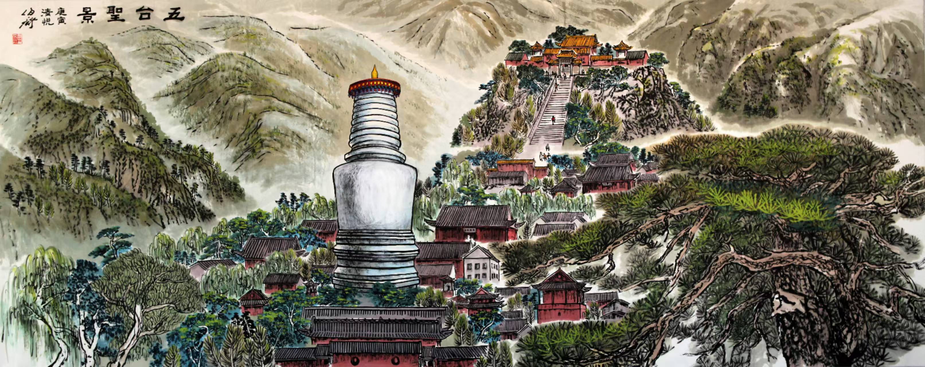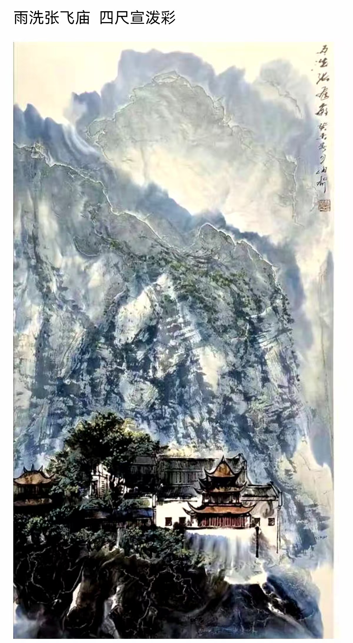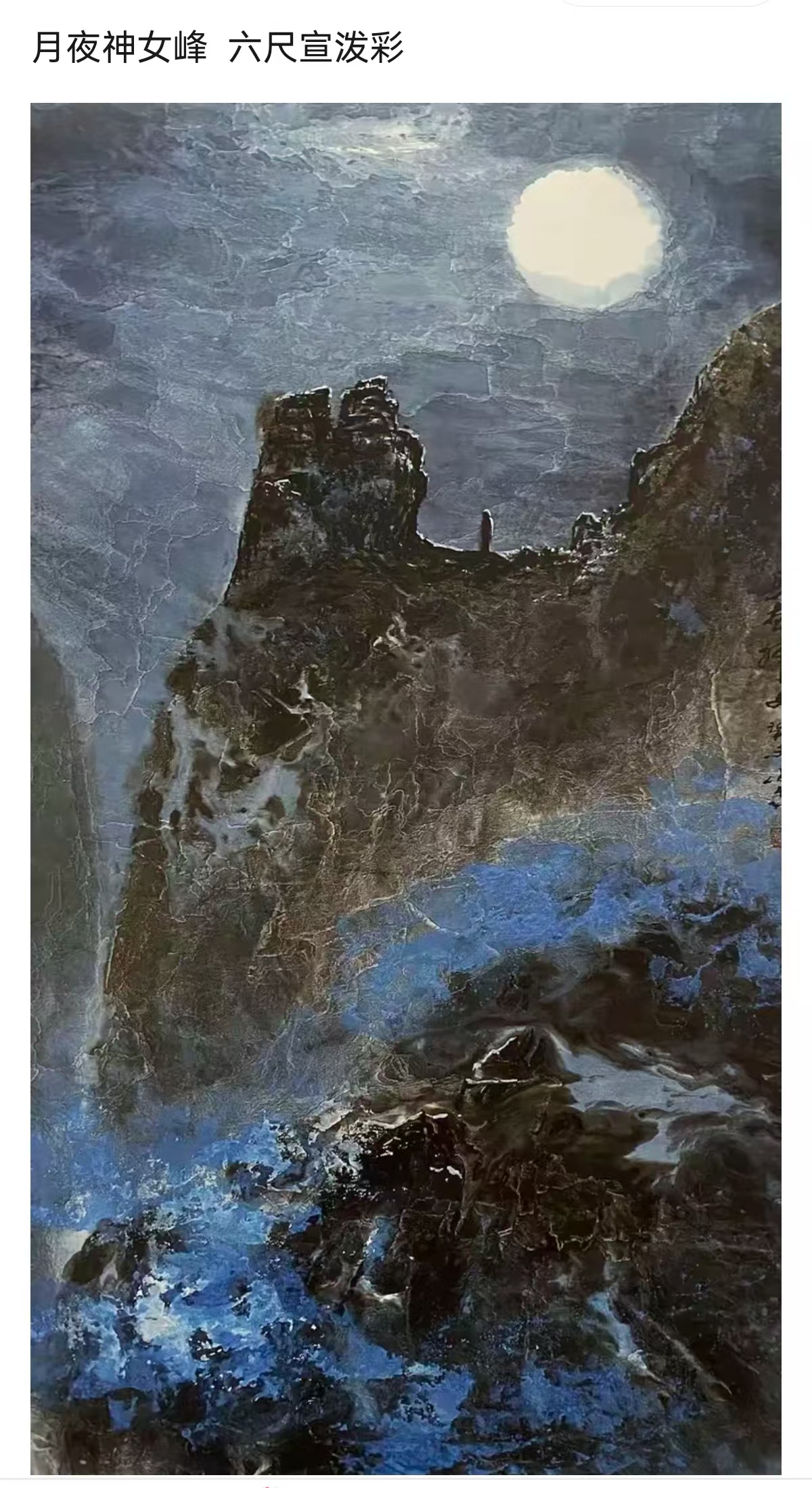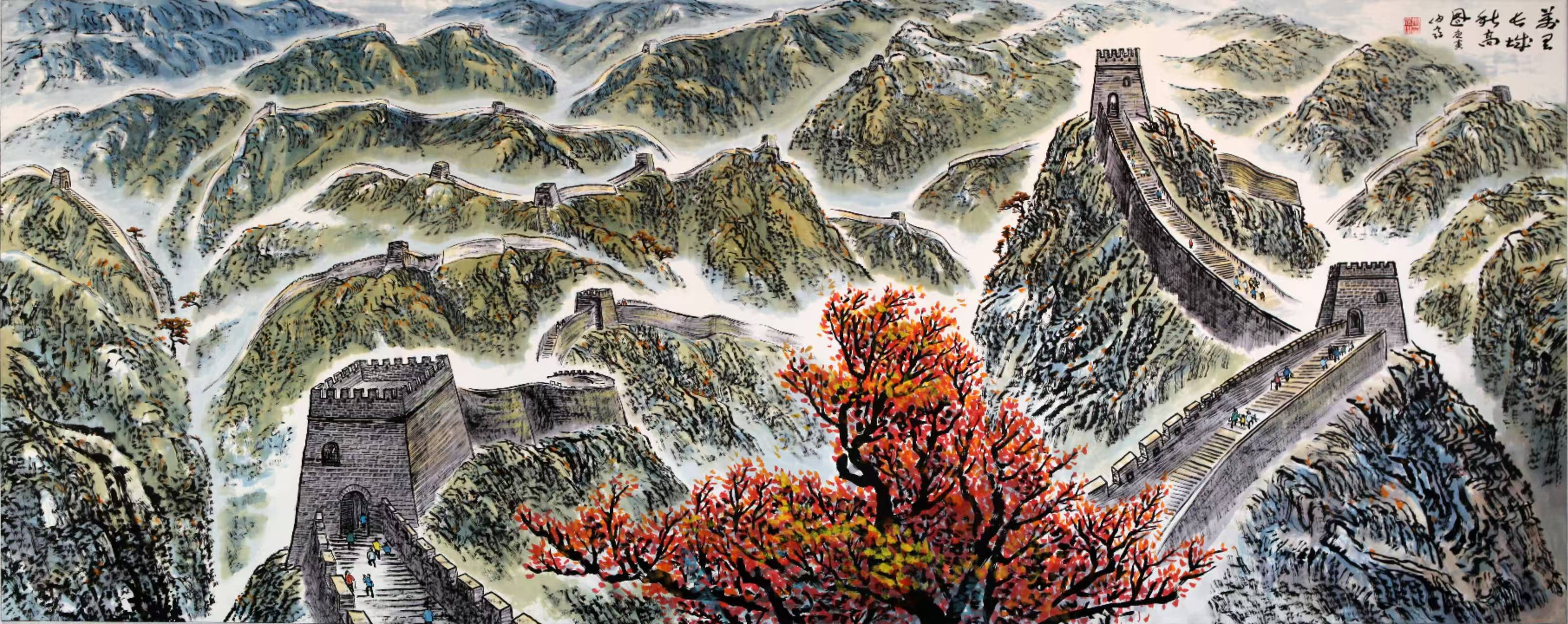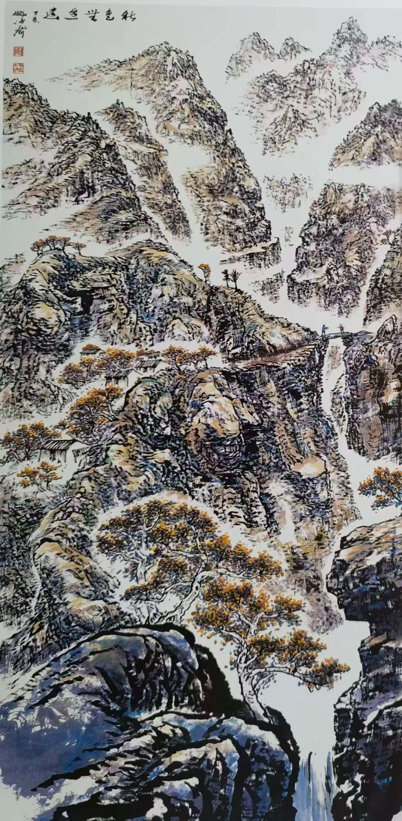 而他的泼彩作品,则宛如一首首悠扬的抒情诗,将人们带入一个如梦如幻、如诗如画的仙境。与焦墨的刚劲恢弘截然不同,泼彩山水由近观变为远望,由恢弘化作清丽,由峥嵘转为迷离。它展现的是三峡的影子,是三峡在光影交错间的柔美与灵动。那绚丽的色彩,如同天边的云霞,肆意挥洒在画布上,勾勒出一幅幅美轮美奂的画卷。红的似火,燃烧着激情与活力;蓝的如海,蕴含着深邃与神秘;绿的像翠,洋溢着生机与希望。每一幅泼彩作品,都是姚先生对三峡之美的独特诠释,是他内心深处对大自然的热爱与赞美。置身其中,我仿佛能闻到山间花草的芬芳,能听到鸟儿清脆的歌声,能感受到大自然的温柔怀抱。