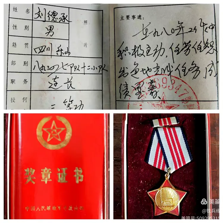 过硬的作风、突出的实绩,让刘德成多次立功受奖。1980年,他以12连连长身份荣立的三等功,在全团连队干部中尤为瞩目,是对他多年实干的最好褒奖。1981年部队整编,11连与12连合并为9连,组织再次委以重任,任命他为新9连连长。在三个连队连长任职期间,他与多位指导员默契配合,无论是曾经的上级还是自己带过的兵转任的新搭档,都结下了生死与共的深厚战友情。
