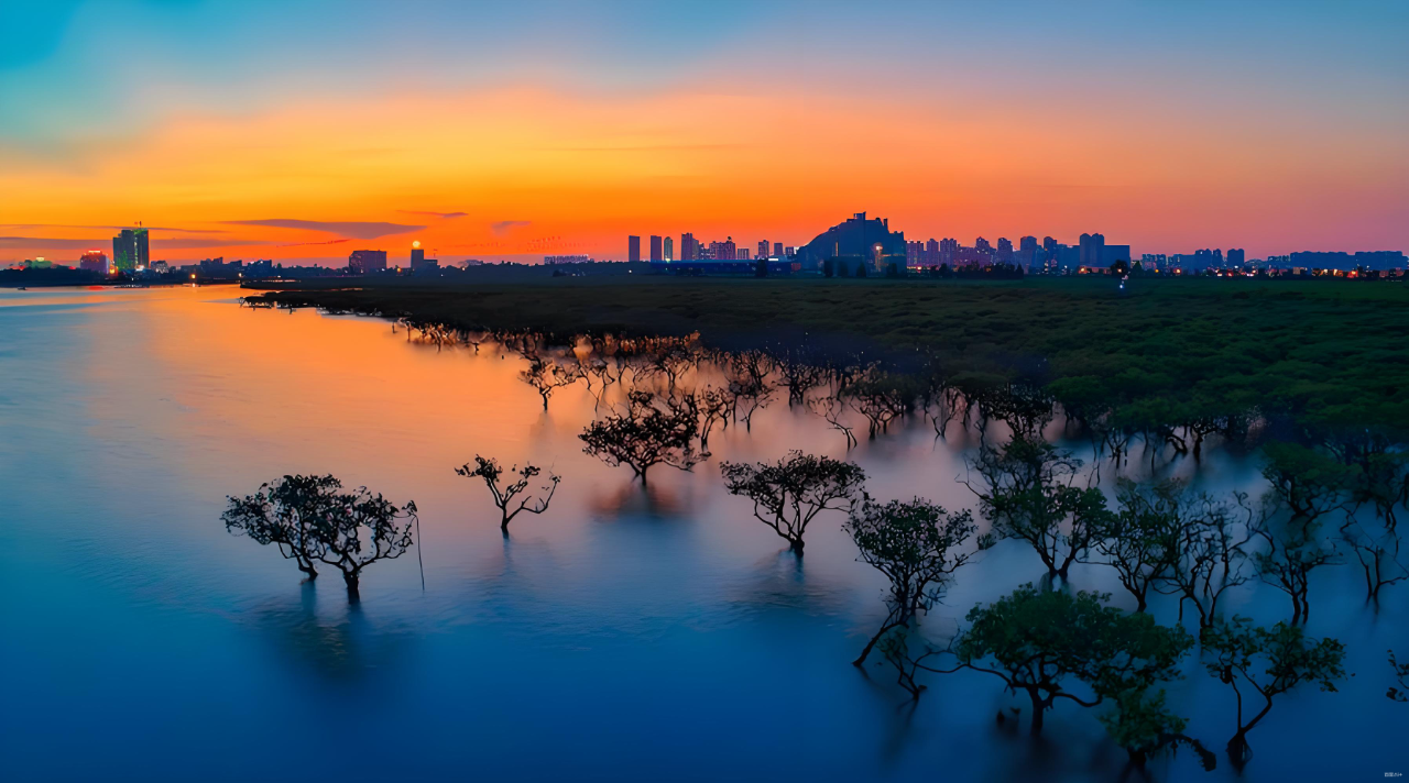 雨势渐小,林帆租了辆共享电动车,沿着海景大道向金海湾红树林驶去。雨后的红树林被洗得翠绿欲滴,盘根错节的根系裸露在滩涂上,像大地的毛细血管。观光栈道上湿漉漉的,偶尔有招潮蟹快速横穿而过,在泥地上留下细密的痕迹。