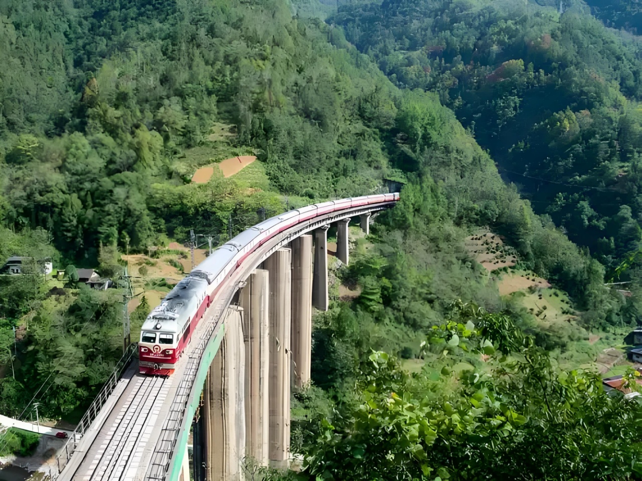 凭着这种只争朝夕、敢打必胜、为中国铁路建设多做贡献的精神,我们英雄的铁道兵逢山凿路,遇水架桥,攻难克险,在短短的6年多时间内,先后建成桥梁716座,打通隧道405座。1975年11月,实现全线临时通车运营。1979年12月全面建成,正式交付运营。