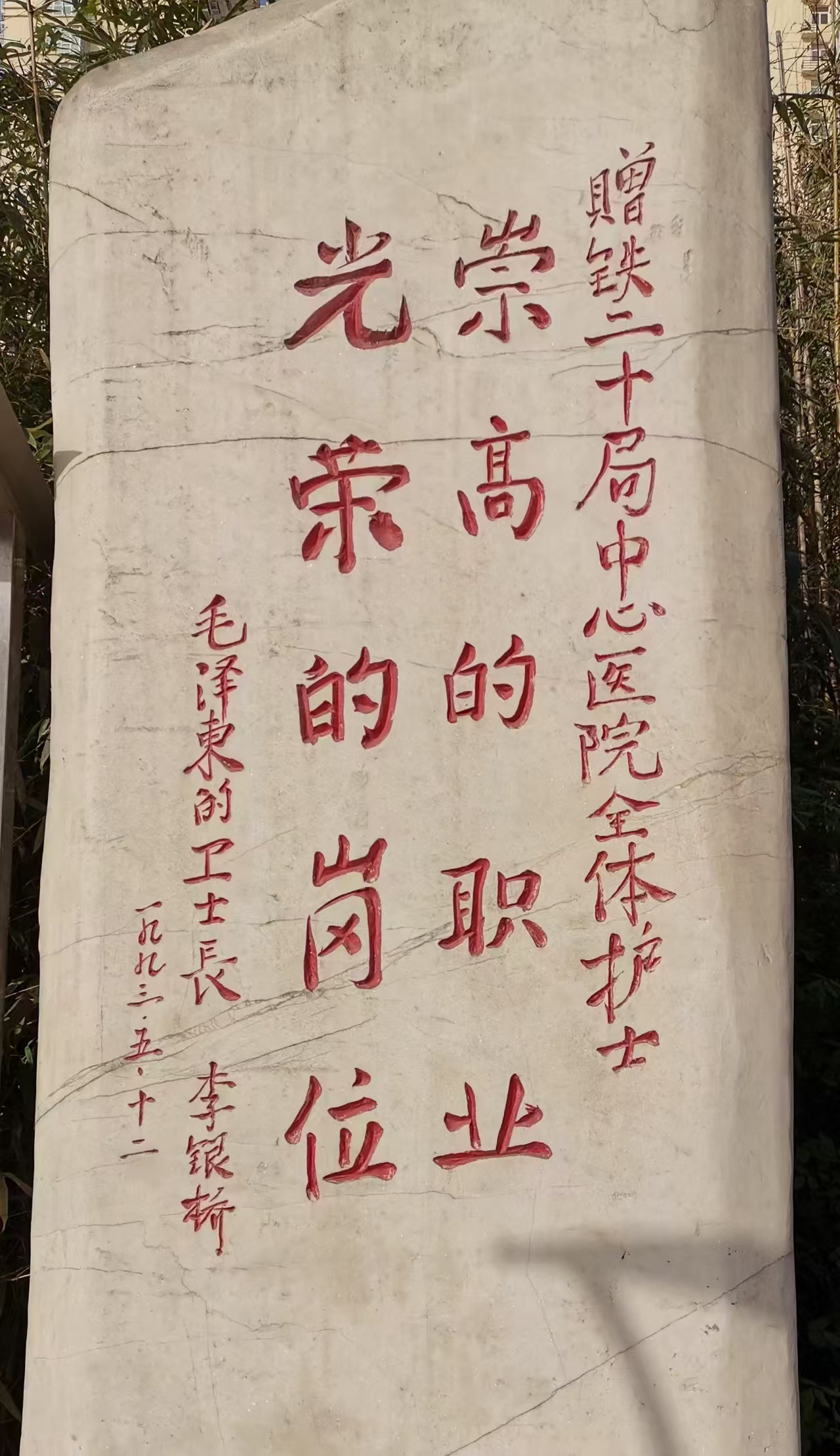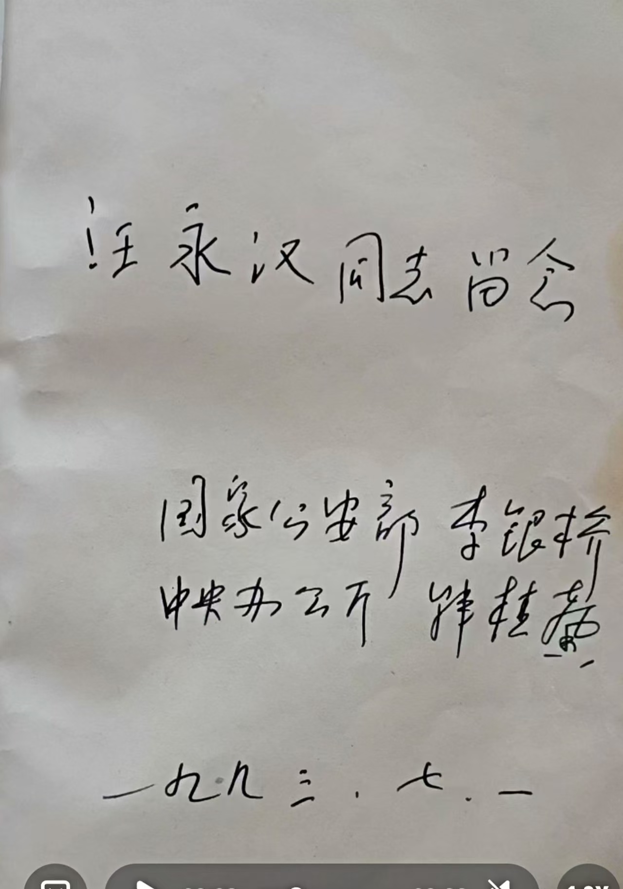 1993年7月1日,值中国共产党成立72周年之际,我携爱人与孩子途经我们中铁二十局中心医院(咸阳)时,偶遇一场特殊的采访——三名工作人员架着摄像机专注拍摄,一名武警战士稳稳推着轮椅,轮椅上坐着位面容沉静的老人,身旁站着一位举止端庄、气质温婉的女士,正轻声协助老人沟通。