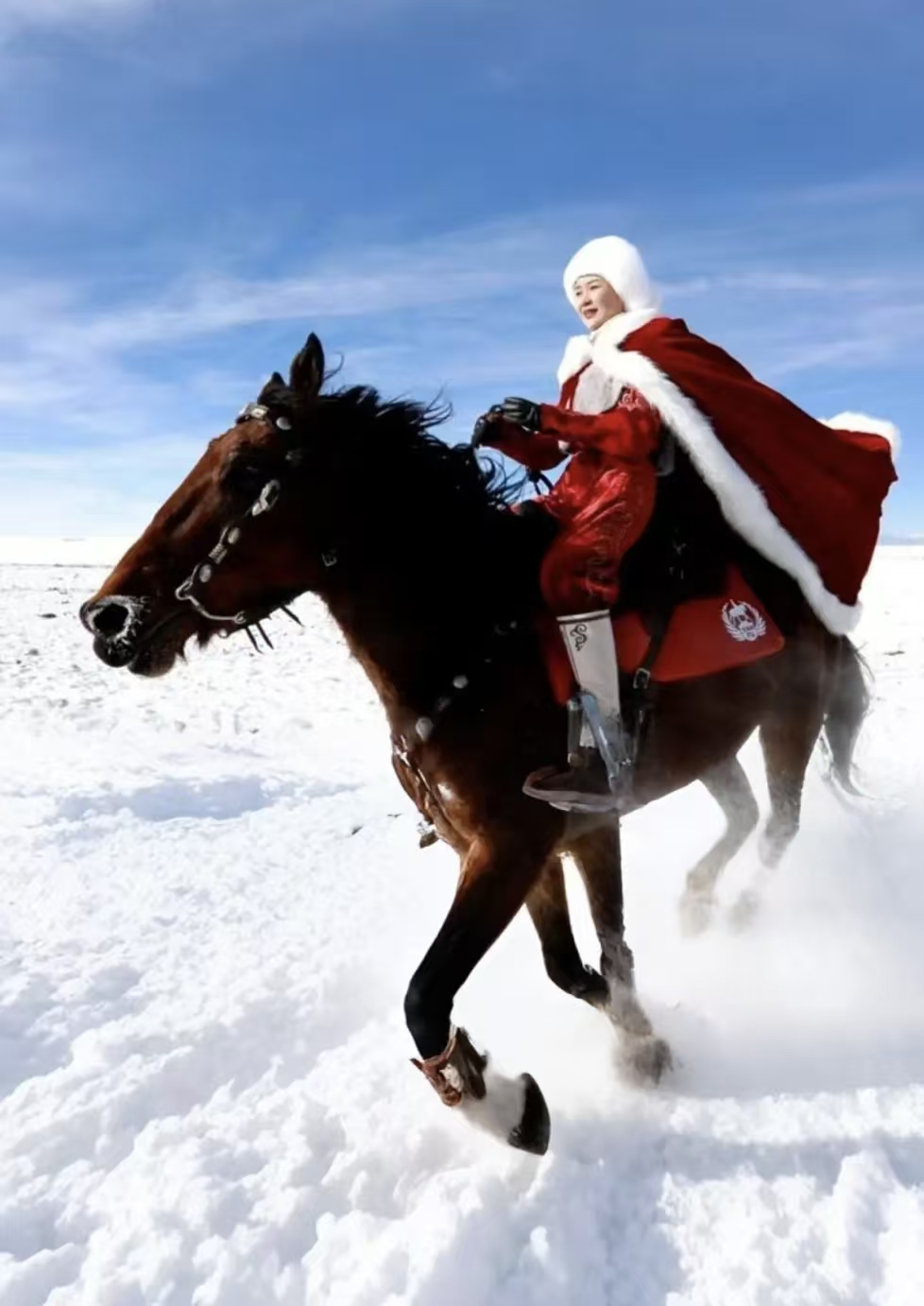 几年前,网上刷到过贺娇龙雪地策马扬鞭的镜头:一袭红衣,英姿飒爽,于万马丛中奔驰在大美新疆的雪地草原。当时只记得她是一位女网红副县长,没有太多的关注。