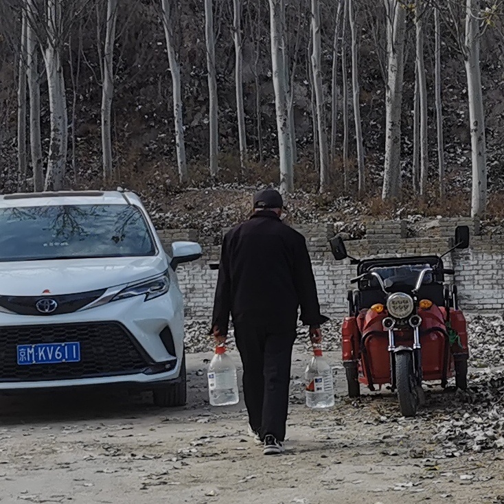 10月30日下午2点多,老申来我家,说是到“龙泉”打水。我说您上次打的水还有一桶没喝呢!他笑着说;今天暖和,咱们一起去,您们到那里看看风景,车都停在门口了。 我和老伴一同乘车前往。