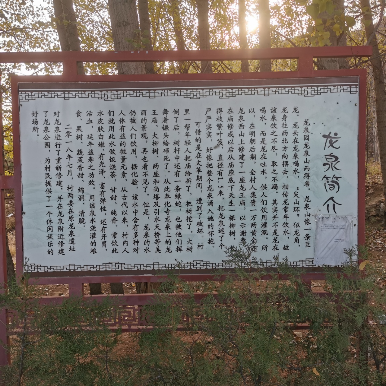 穿过蚕房营村就到龙泉了,首先看到的是一块“龙泉简介”牌,详细的介绍了龙泉的来历:(见下图)