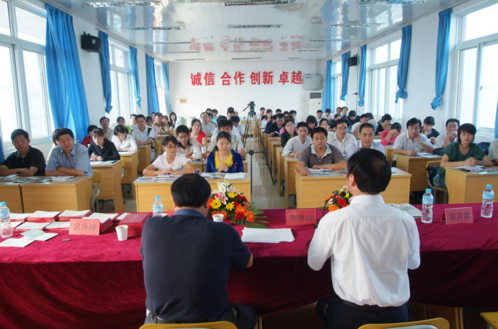李佩山(讲课席右)正在给中铁十四局集团新闻培训班的学员讲述蒙标成的故事