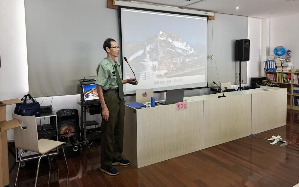 会场秩序井然。 投影坏了,胡老师就站立在台上,手持话筒完全脱稿讲,不一会儿音响也坏了,胡老师放开嗓子大声讲。胡老师坚持用自然嗓音讲了40多分钟,在场听众为此感动!他们说:当过兵的人就是不一样!