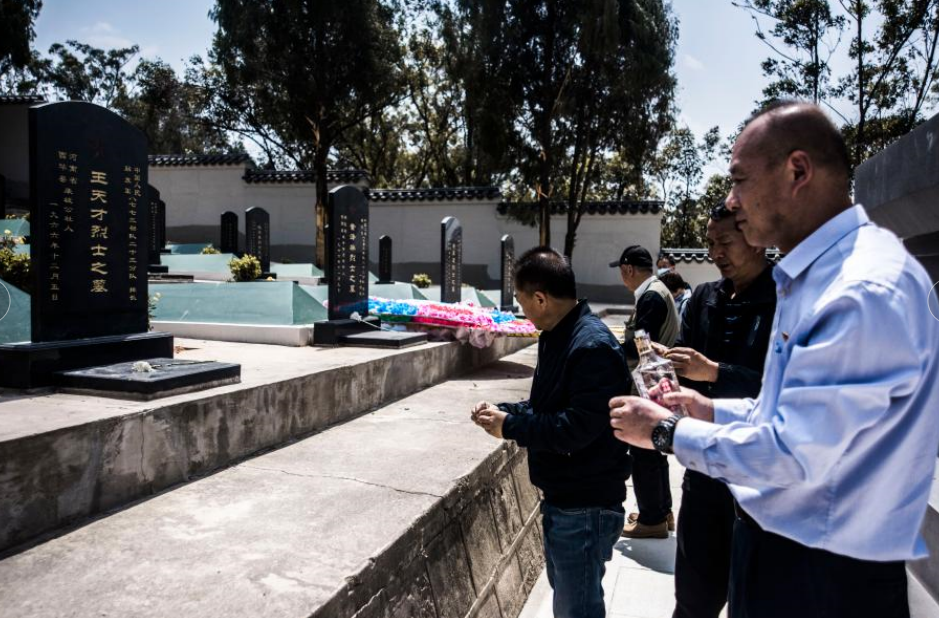 在金山烈士陵园,大家举行了庄严的祭奠仪式,他们向烈士敬酒,向纪念碑敬献花圈。吕林等老兵接受了电视台记者的采访:吕林说:有很多老兵都希望能来参加这次清明祭扫活动,但由于疫情影响,我们只来了5位老兵,我们代表中国退役军人就业创业服务促进会铁道兵实业服务委员会、代表云南铁道兵文化联谊会、同时也代表云南全省的数万名铁道兵来看望战友。我们此举是为了更好地传承铁道兵文化,弘扬铁道兵精神,让烈士的鲜血不要白流,为中国梦的实现和国家建设贡献一份力量。