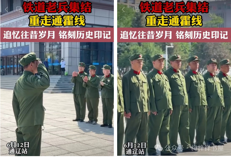 2024年6月12日,铁道兵老战士重走通霍铁路(网络截图)。