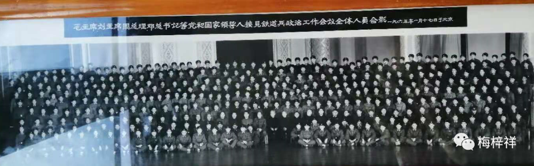 1960年2月25日,铁道兵文化教育积极分子代表大会召开,总结、交流经验,动员部队继续向科学文化进军。刘少奇、邓小平、李先念等中央领导接见全体代表并合影留念。