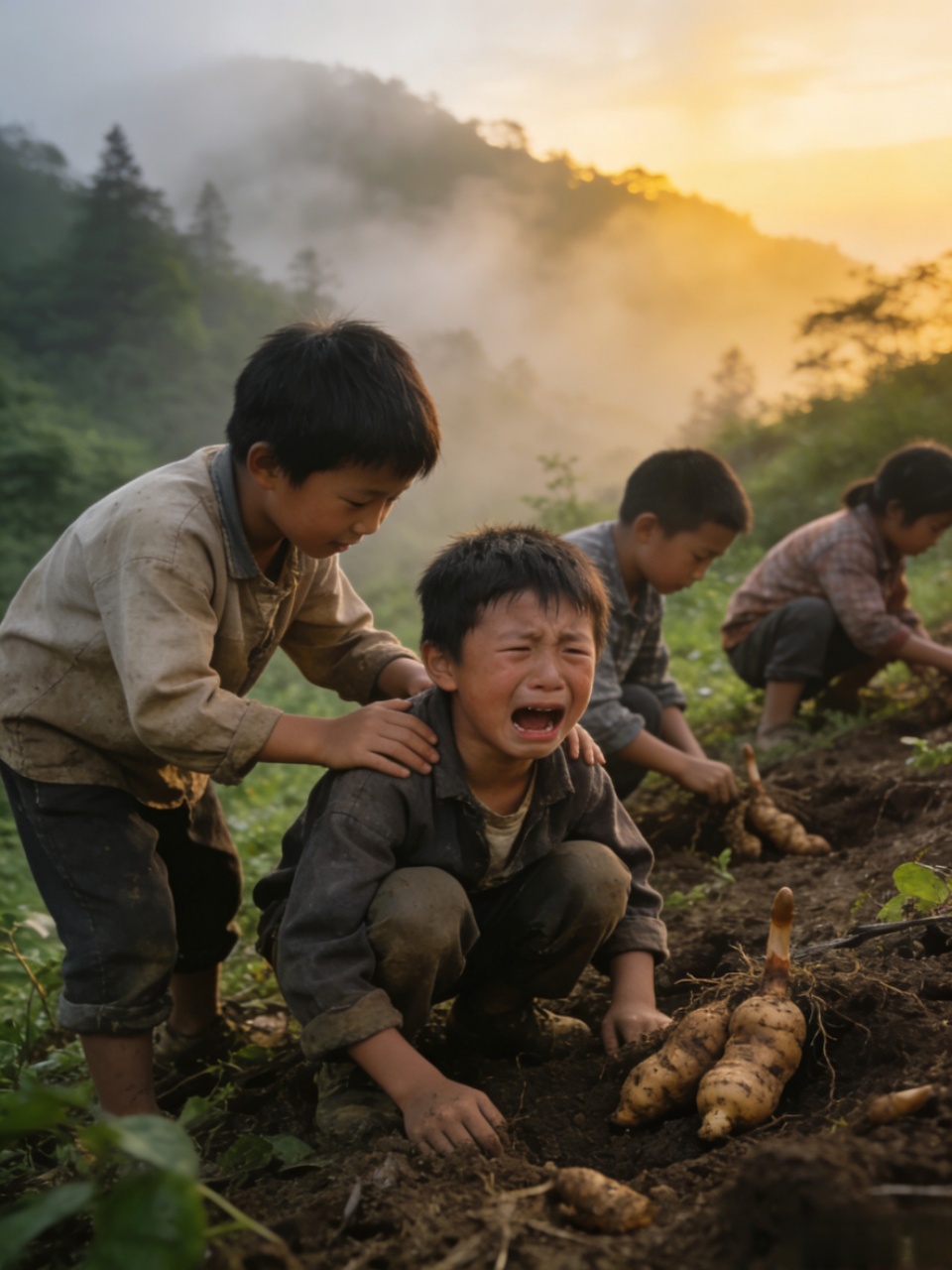 夕阳一点点西沉,金色的余晖被山林吞没,暮色像一张巨大的网,从四面八方笼罩下来。恐惧像冰冷的潮水,瞬间淹没了每一个孩子。伙伴们一个个吓得脸色发白,浑身发抖,年纪小的春安咡,早已忍不住哭出了声,哭声在空旷寂静的森林里回荡,听得人心慌意乱。大家你看我,我看你,手足无措,眼里全是绝望,只想着家,想着母亲,想着天黑之前,还能不能走出这片无边的密林。