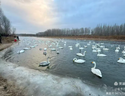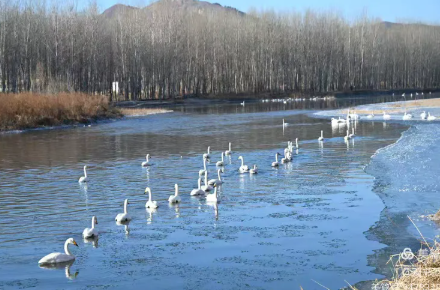 红村天鹅湾已经成为我国最北端最大的越冬天鹅栖息地, 是中国北方地区的一大冬日盛景。