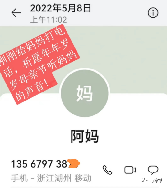 视频号这样写的:刚刚给妈妈打电话啦;岁岁年年母亲节,祁愿听到妈妈的声音……