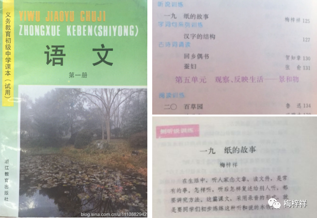 再有一件事,是母亲讲我的一篇文章选入浙江省初中语文课本,她知道是光彩的事。有一天,她在马路上遇到教过我的一位老师,老师请她介绍我小时候刻苦学习的事:“我讲课文时,要向学生说说梅梓祥小时候怎样用功读书的,——他给学校增光了……”母亲才觉得文章了不得,回家再次让父亲念课文给她听,还用手摸我的名字,让我弟弟写信说这事的经过……