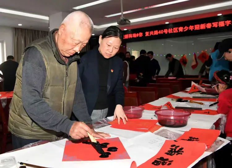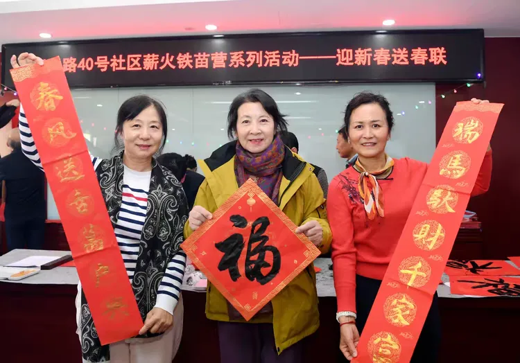 北京海淀区复兴路40号社区与社会组织的双向奔赴,让这场新春慰问超越了简单的公益行动,成为凝聚情感、传递尊崇的纽带。活动现场,社区工作人员牵头统筹,与中铁建老年体协、铁道兵文化公益基金的志愿者们默契配合:书法家们现场挥毫示范,将“逢山凿路显军魂 薪火相传守初心”“铁血铸路功千古 龙马精神福满堂”等兼具铁道兵特色与新春祝福的联句融入创作,以专业指导助力孩子们打磨作品;铁道兵文化公益基金的志愿者则在互动中为孩子们讲述铁道兵的奋斗往事,让每一幅春联、每一个福字都承载着对老兵的深沉敬意与红色记忆。