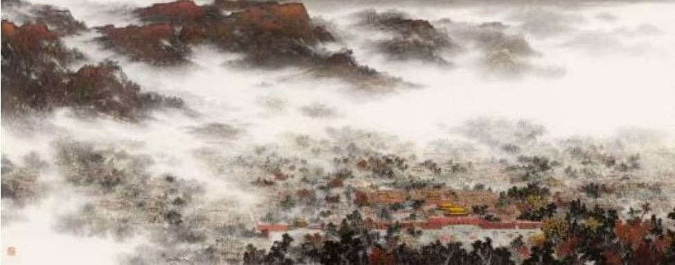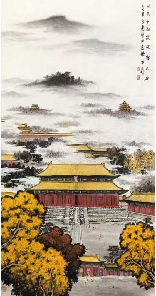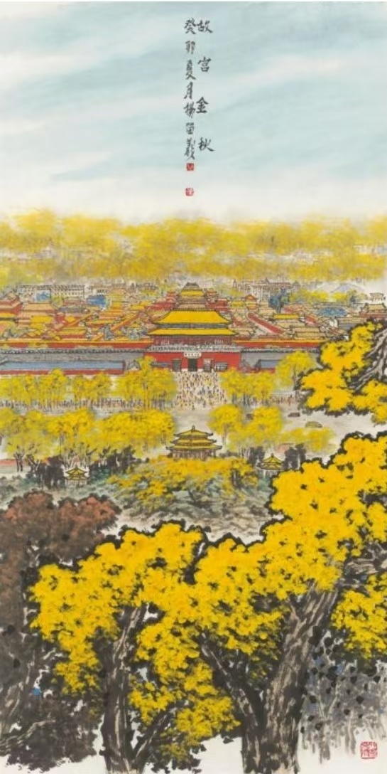 /杨留义 城市山水画《故宫金秋》136x68cm/