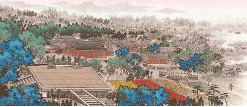 /杨留义 城市山水画《北京中轴线先农坛》112x247cm /
