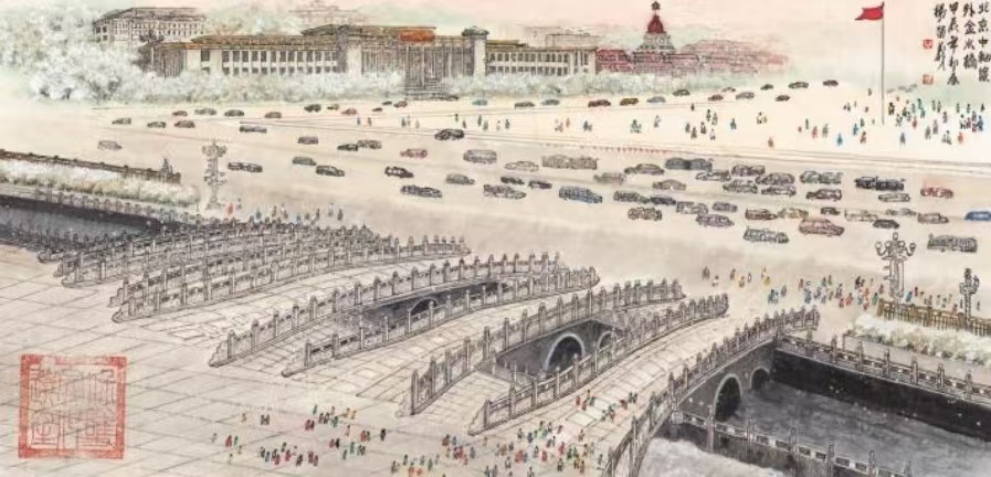 /杨留义 城市山水画《北京中轴线外金水桥》69x144cm/