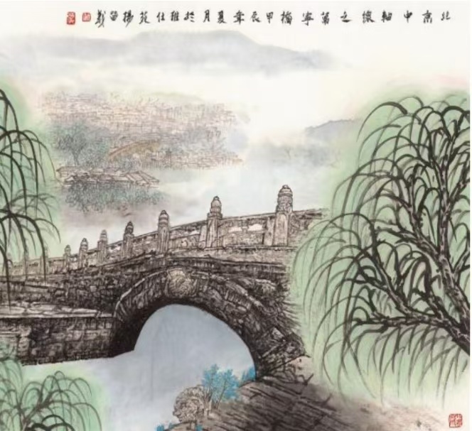 /杨留义 城市山水画《北京中轴线之万宁桥》96x110cm/
