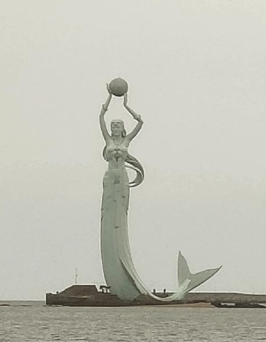 《鲅鱼公主》雕塑位于营口鲅鱼圈区山海广场,源于古老而美丽的传说。雕塑高60米,是营口的标志性建筑之一。鲅鱼公主的故事太啰嗦,简介都几千字。这种传说都大同小异,就是讲一个年轻的渔民在海里打鱼,捕到一条小鲅鱼,渔民放了小鲅鱼。这个小鲅鱼是鲅鱼王的小女儿,小鲅鱼感谢救命之恩,与年轻渔民产生爱情,经过许多波折,终成眷属的故事。