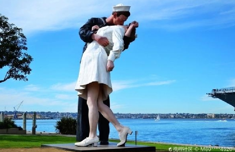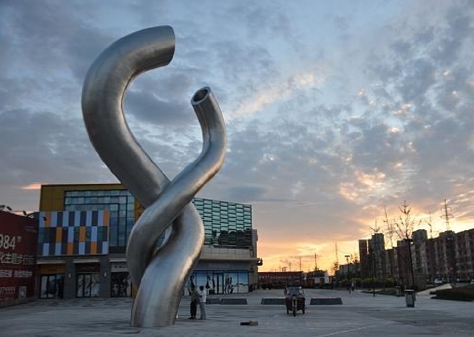这座雕塑位于盘锦万达广场,由两条银色的输油管线盘旋缠绕而成,象征着盘锦的工业文明与生态文明相伴相生。雕塑的创意灵感来源于1945年日本宣布无条件投降时,纽约时代广场上的一对恋人在欢庆胜利场景时的经典照片《胜利之吻》。