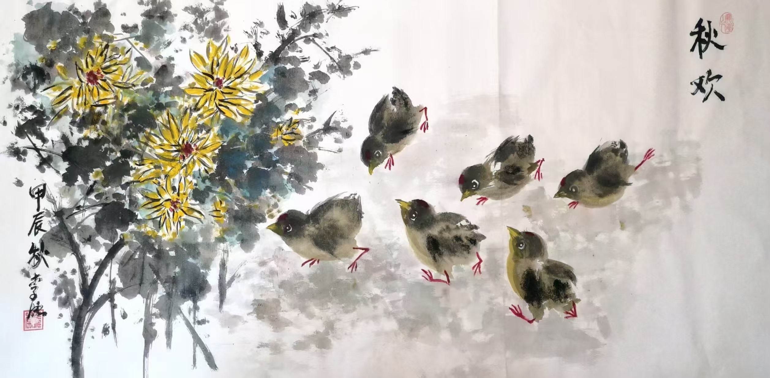 《紫气乐韵》——李 能花鸟画作品欣赏