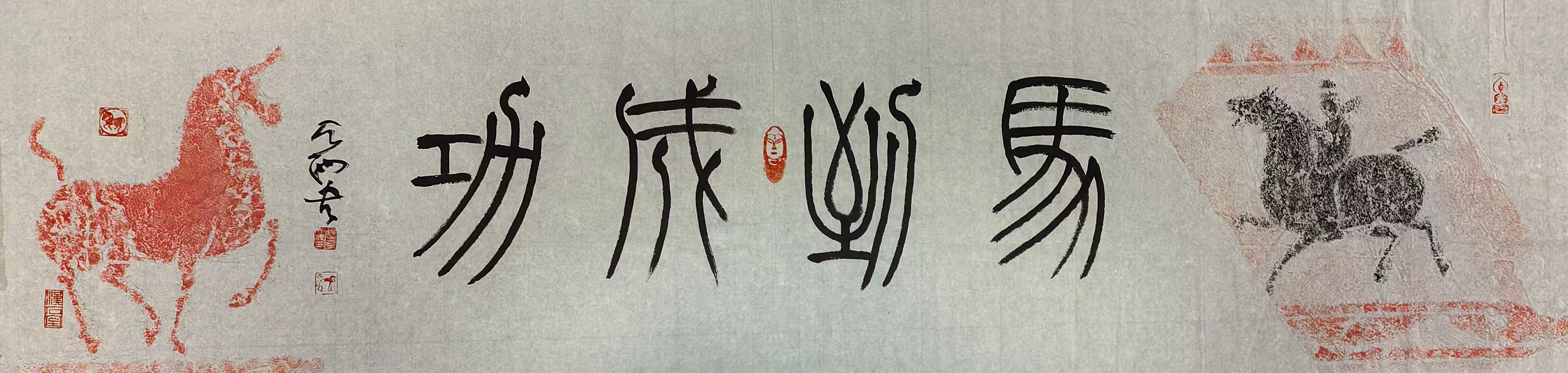 作为汉画艺术的重要传承者,李天池专注于汉画像石拓片的收藏与研究,1995年以来在杭州、南京、上海等地举办七次汉画专题展,推动汉文化的传播。其著作《茅村汉画像集》《语石精舍珍藏汉画集》系统梳理了徐州汉画像石的艺术特色,作品如《烤肉串图》《有凤来仪》等融合历史考据与艺术创新,生动展现汉代生活场景与文化内涵。