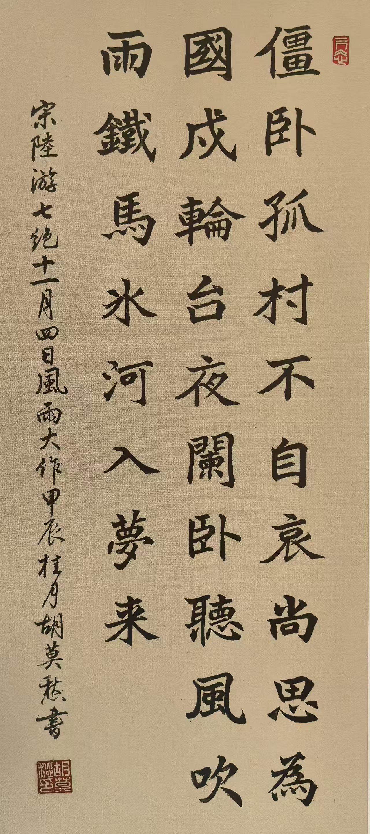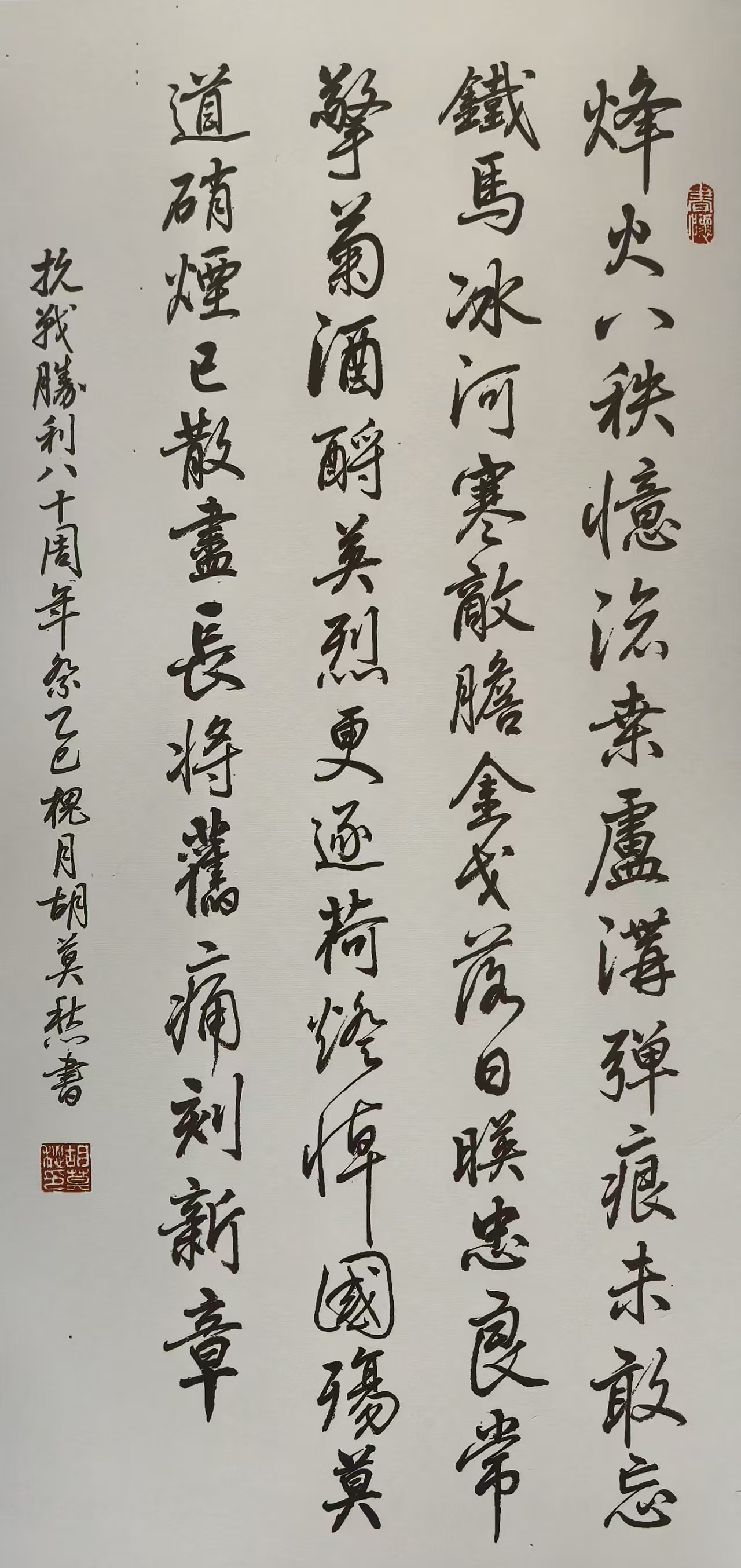 1968年3月入伍铁道兵第八团。新兵训练期间,我负责主办班墙报《学习专栏》。新训结束前夕,团军务股谢隆元参谋到连队挑兵,在我们班看到墙报上通栏大标题"敬祝毛主席万寿无疆"和中楷毛主席语录,问我"这是你写的?"我立正回答"是"。之后,我被分配到团司令部管理股当文书。这期间,机关刷标语、出板报、办专栏都是文书的事,经常抄抄写写,是我既工作又练字的最佳时期。而且同住一室的老首长、管理员张德文和前任文书邓焕斌都是书法爱好者,张管理员的《曹全碑》隶书和邓文书的榜书都写得相当好,对我影响很大。可惜这段时间短了点,不到两年我就下到施工连队。在基层基本没有练习书法的条件。八年后虽然调回机关,先后在师团政工部门、改工后在局处领导岗位任职,但我这个人行事比较单一,为了全身心投入工作和钻研与之相关的业务,只有把唯一的兴趣爱好深藏心底。