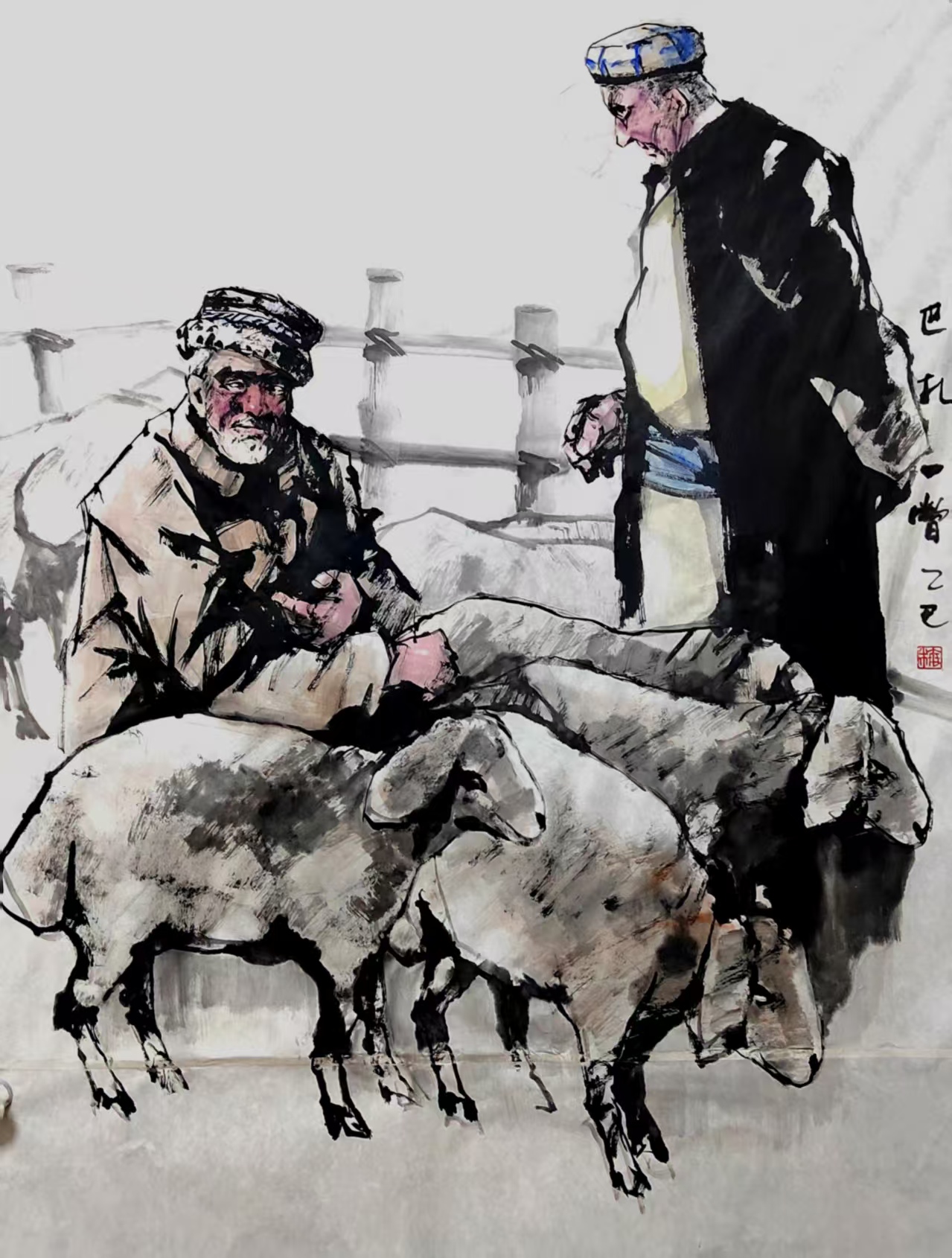 水墨画《巴扎一瞥》120cmx97cm 2025
