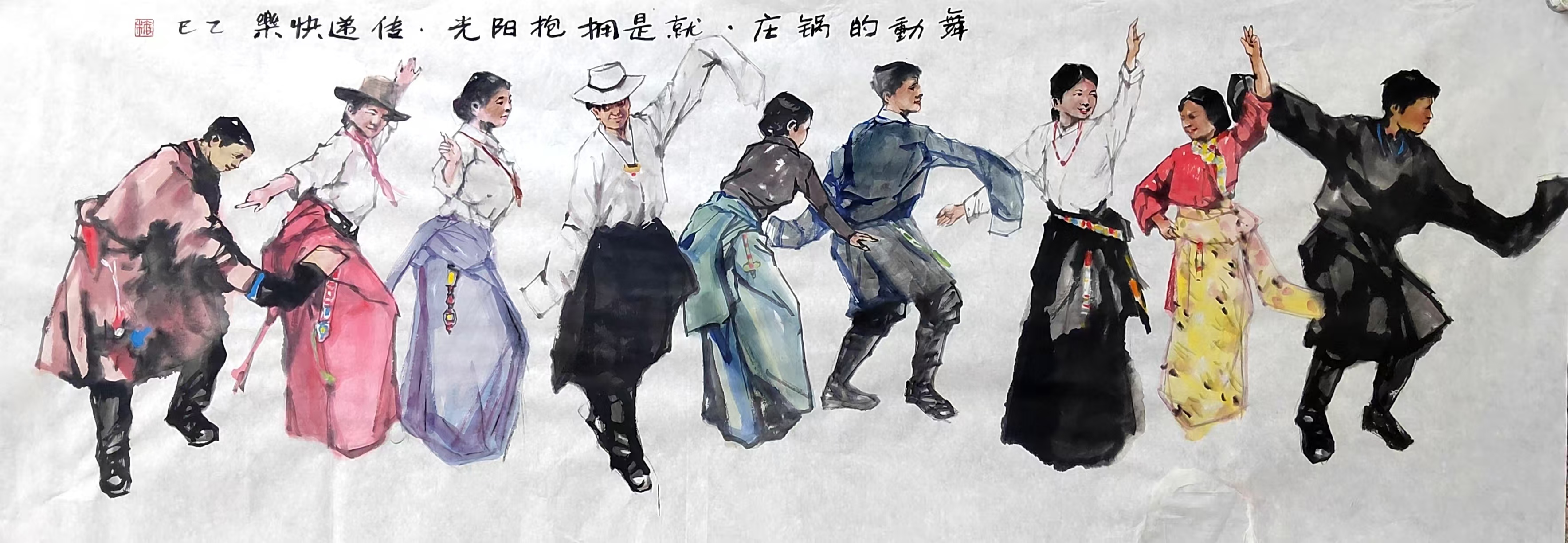 梅 竞 || 水墨画《舞动的锅庄》一组欣赏