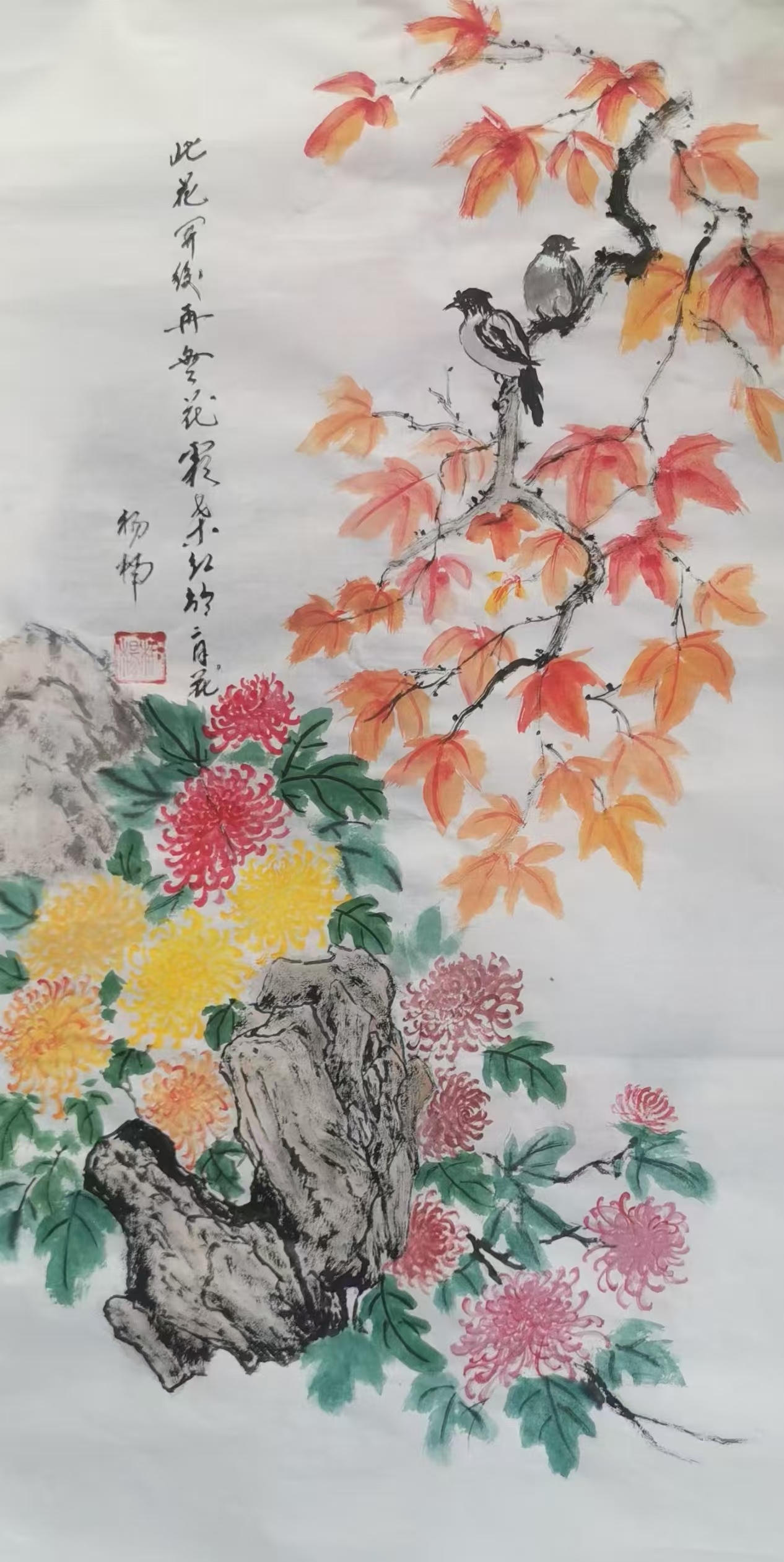 国画《此花开后更无花 霜叶红于二月花》100cmX50cm