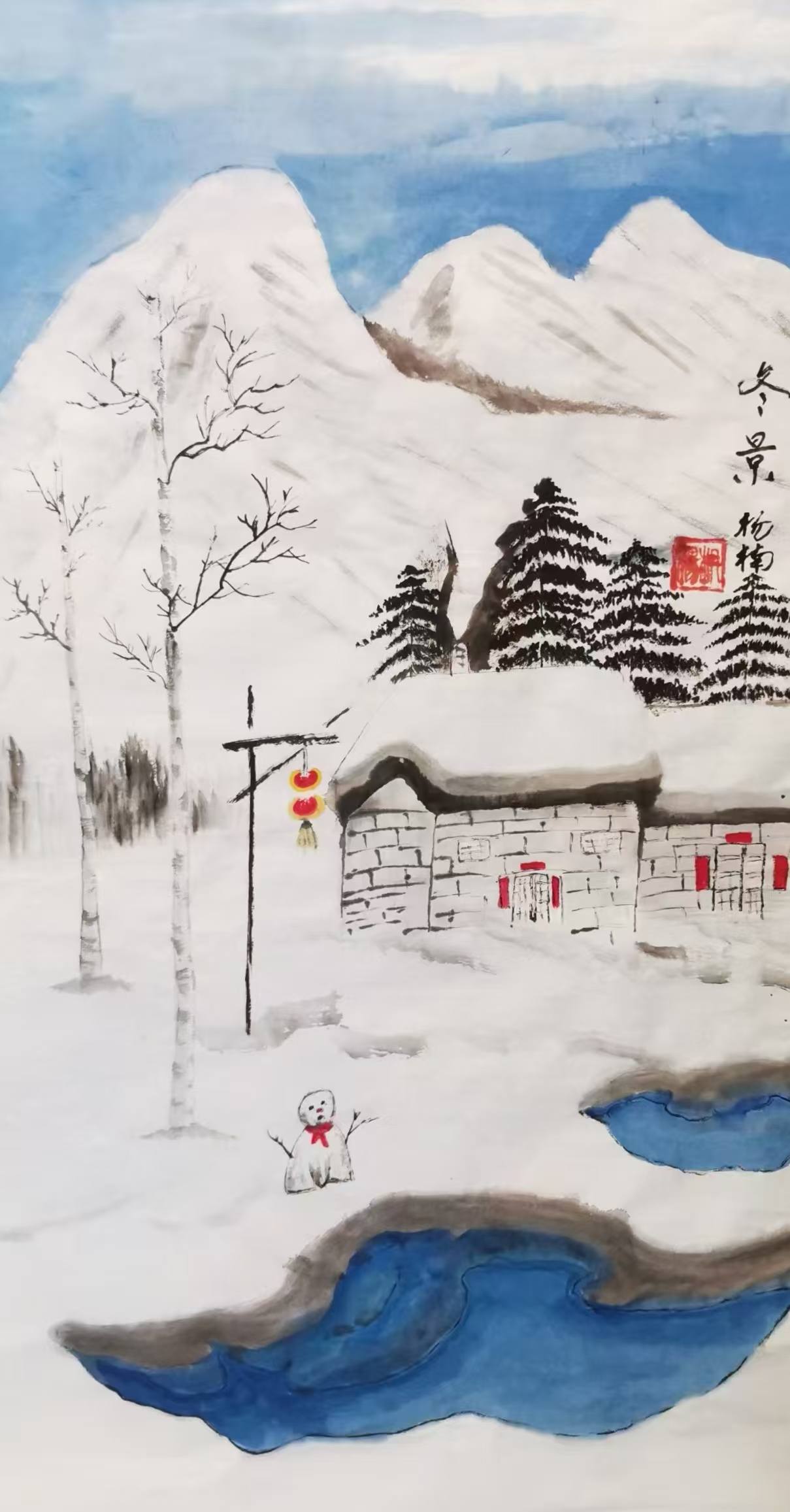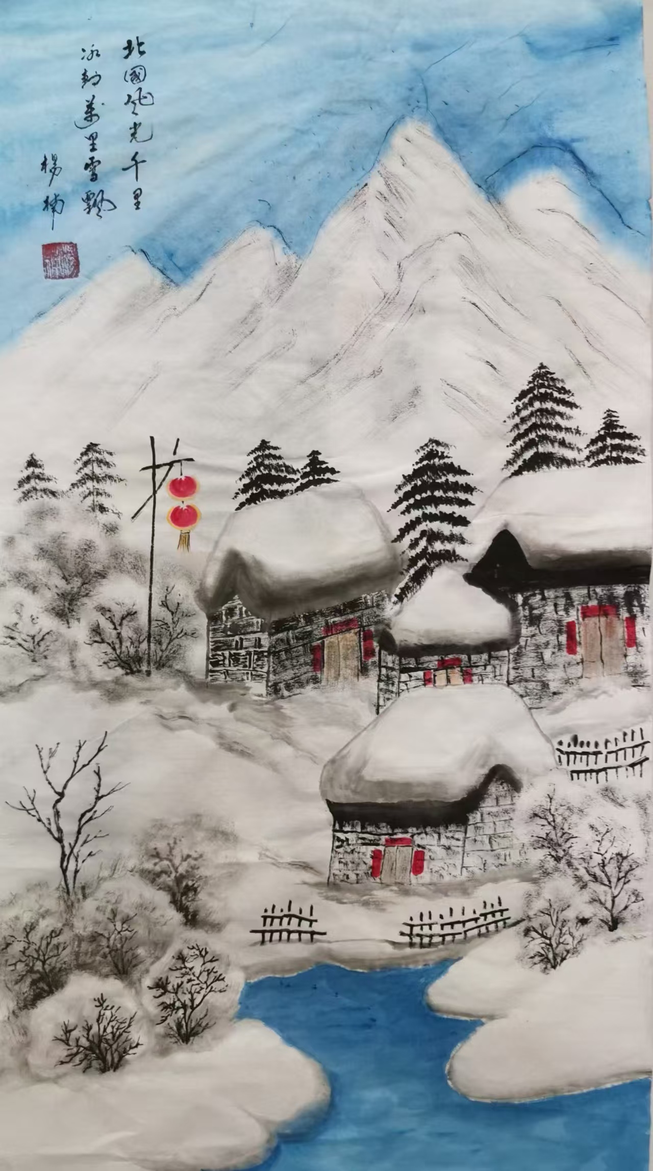 国画《北国风光,千里冰封,万里雪飘》100cmX50cm