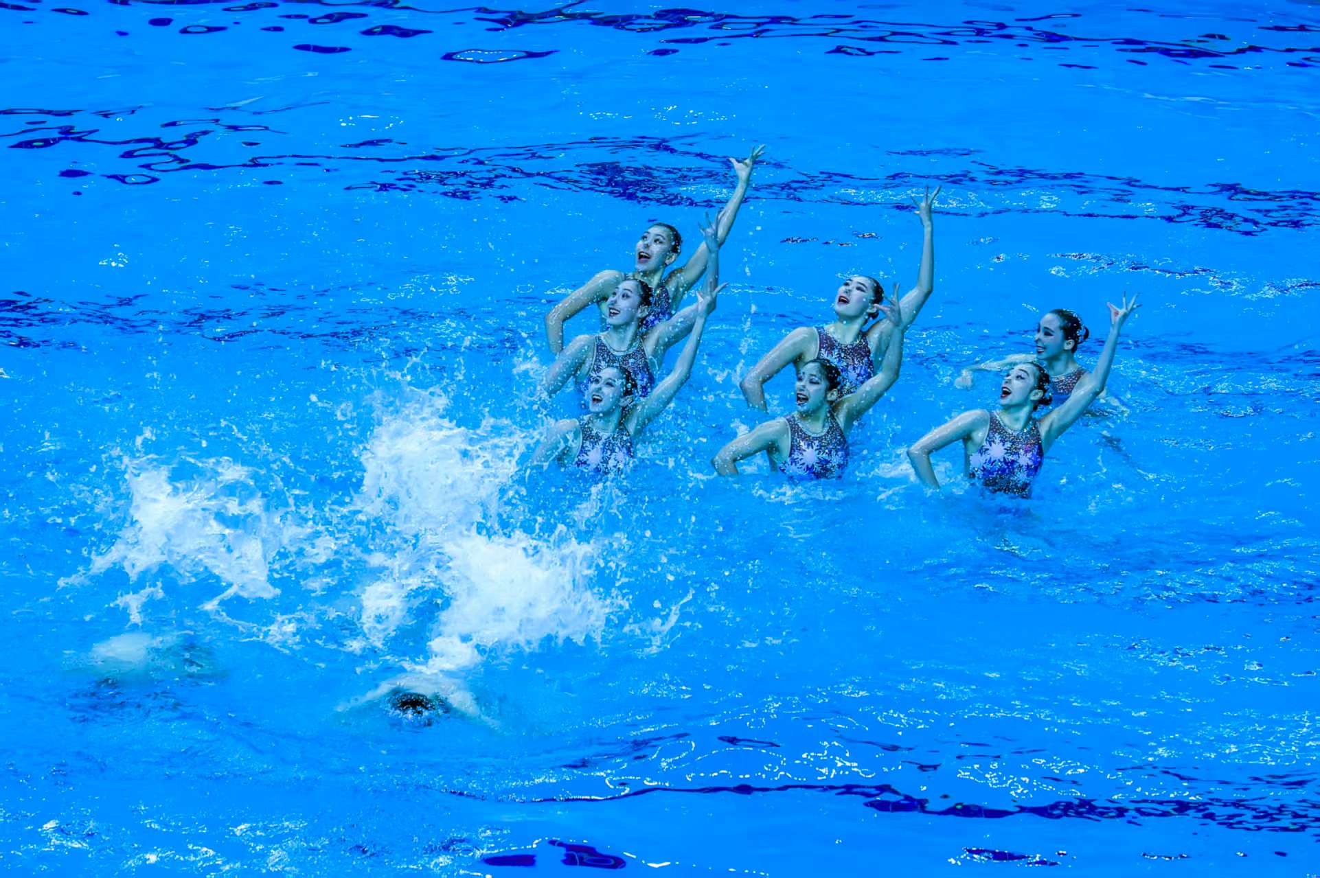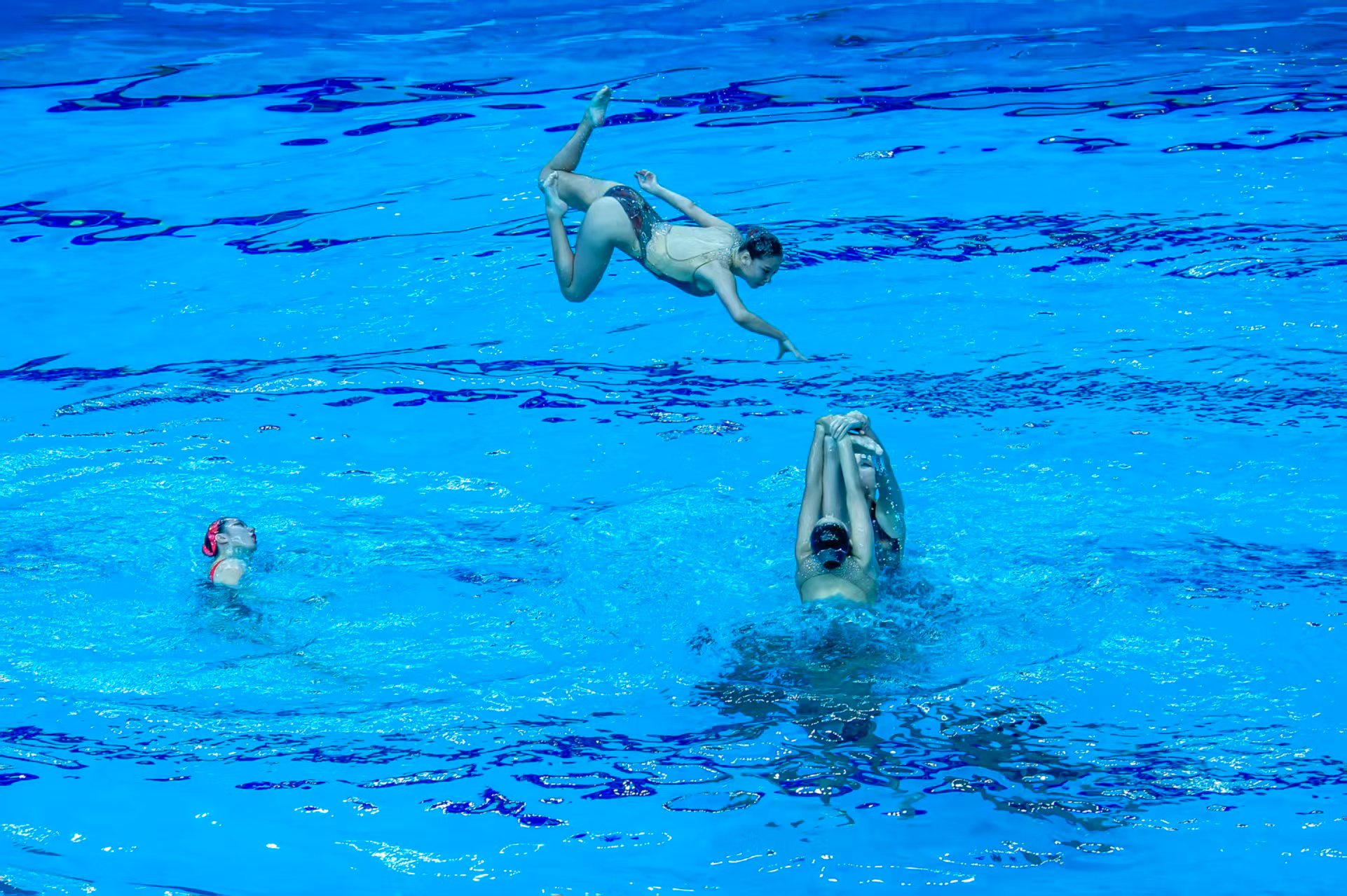 《出水芙蓉》(组图)2017年5月摄于天津 十三届全运会,花样游泳队的姑娘们表演美轮美奂的花样游泳,整齐划一的动作,唯美的舞蹈造型,如出水芙蓉般美丽。