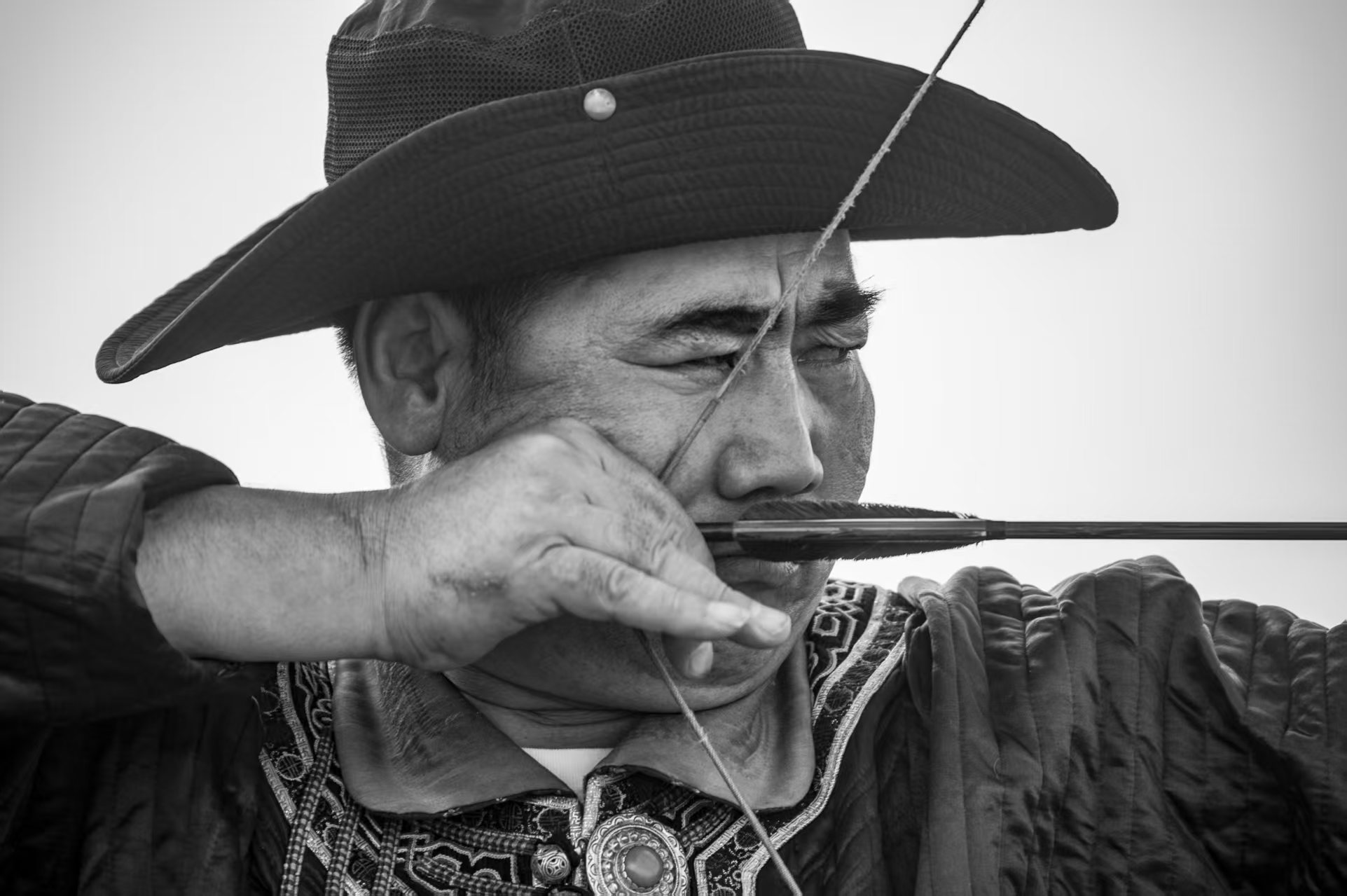 《箭在弦上》2017年5月摄于内蒙锡林郭勒正蓝旗 春季那达慕大会体育比赛射箭场上,一个蒙古族选手屏住呼吸,瞄准箭靶,箭在弦上,一触即发。