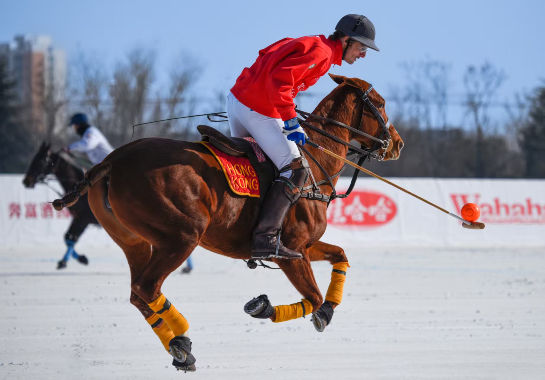 《精准》 2016年1月摄于天津马球俱乐部 球比赛,运动员骑在马上,用马球杆击球入门,一个运动员用娴熟的技术,用马球杆将球托起,动作充满趣味和技巧。