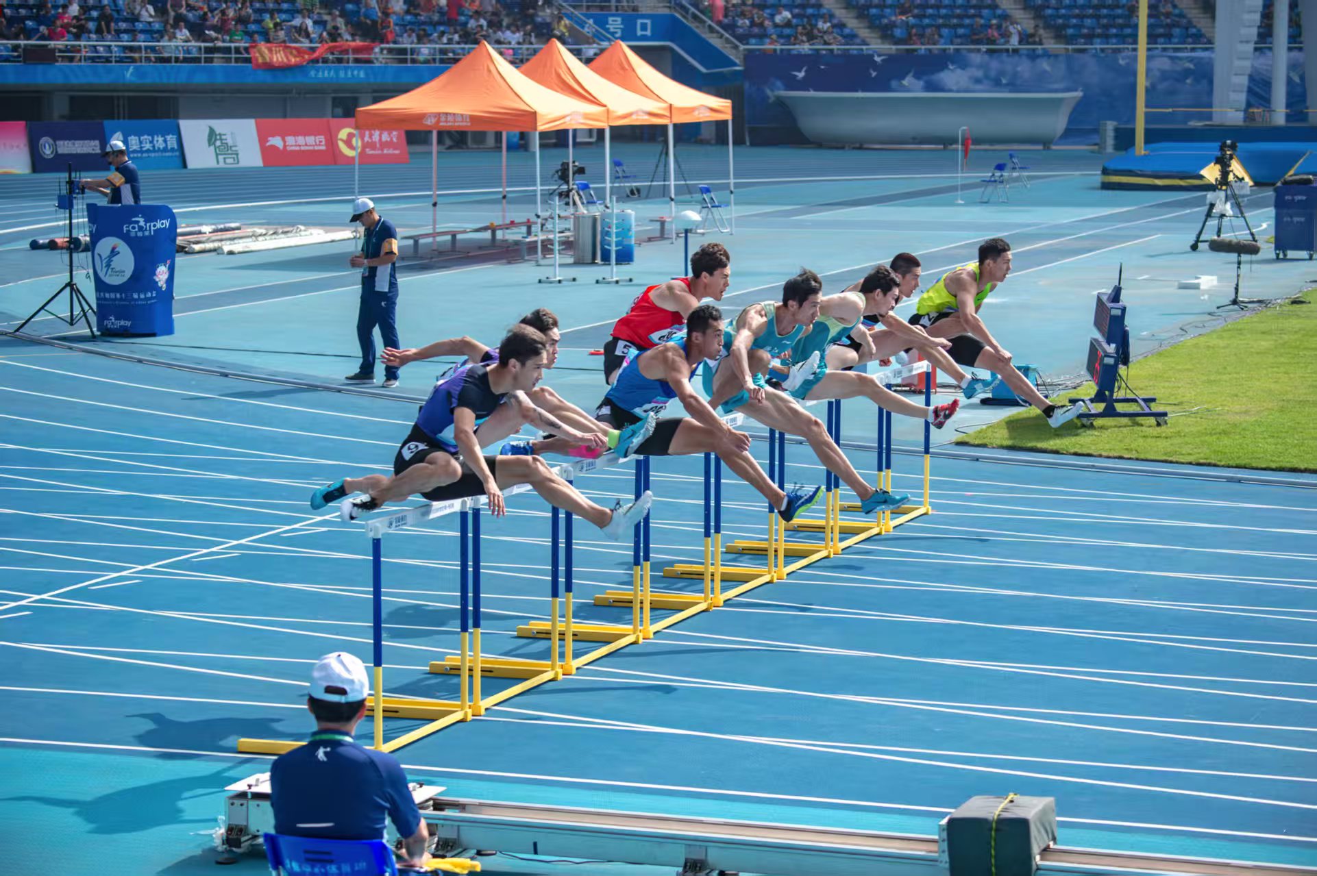 《冲》2017年9月摄于天津 十三届全运会在天津举行,田径运动员奋力跨栏向前冲。