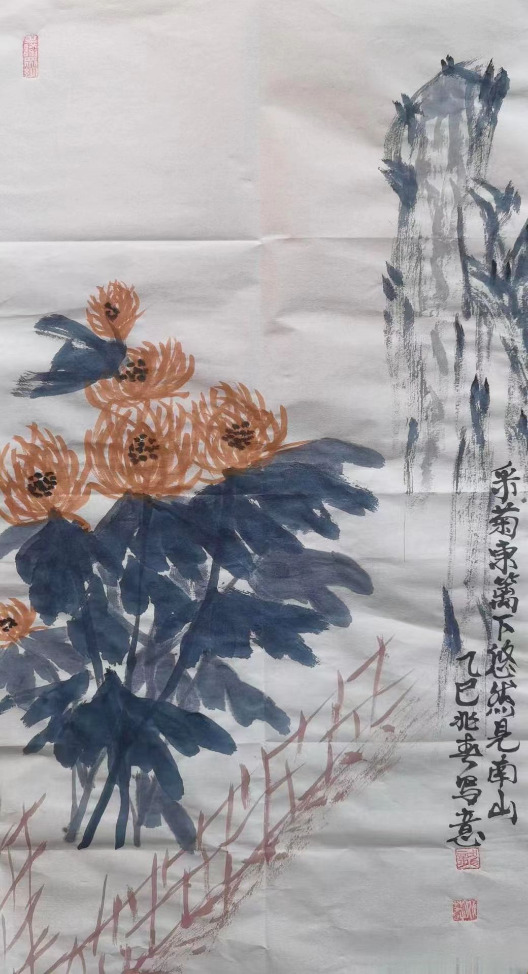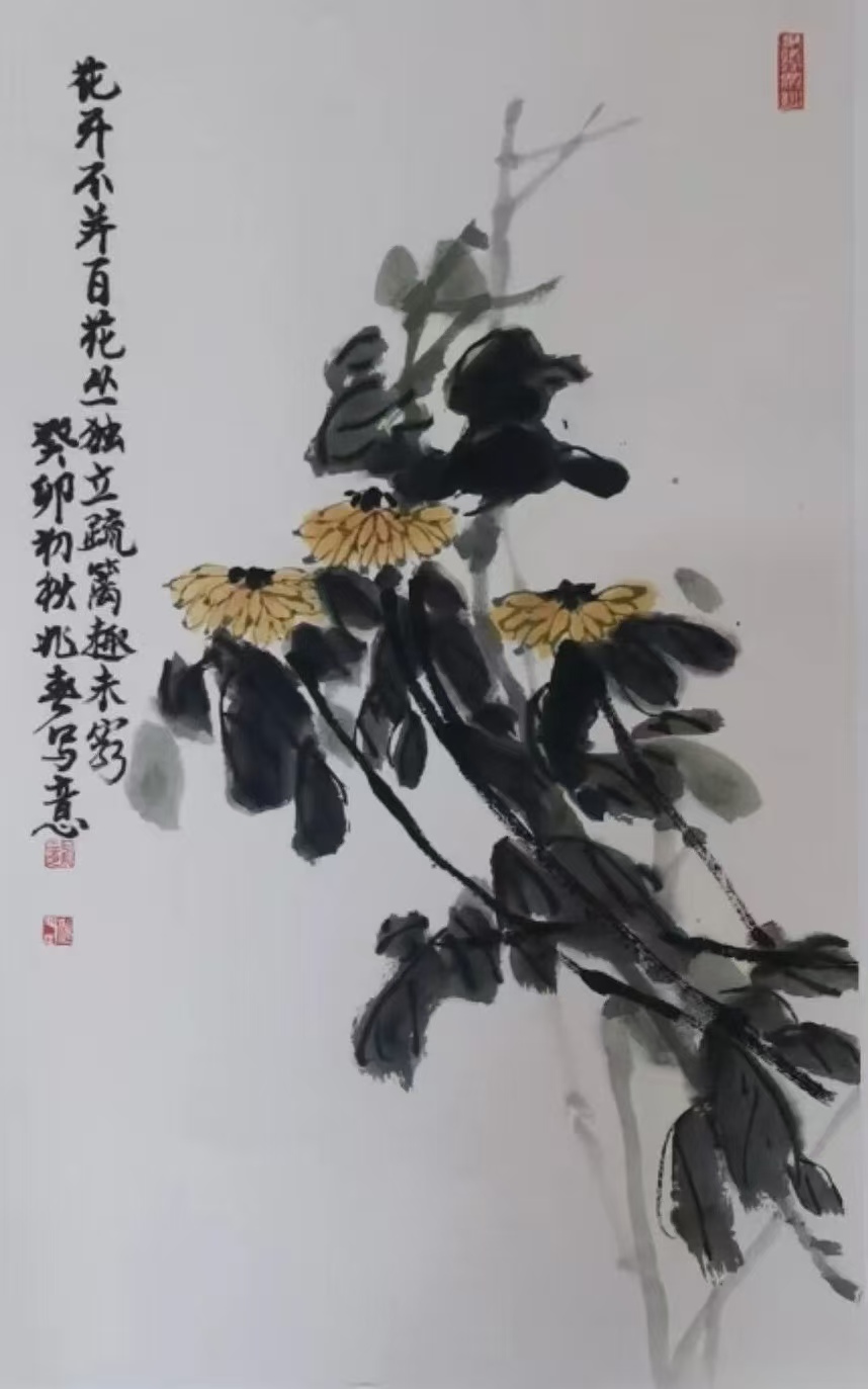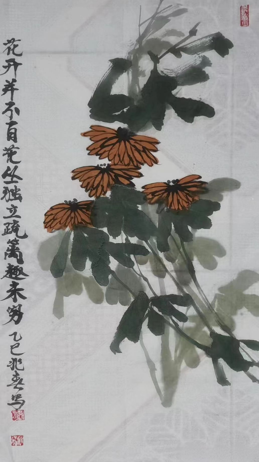 国画《花开并不百花丛 独立疏篱趣未穷》(2)69x34cm