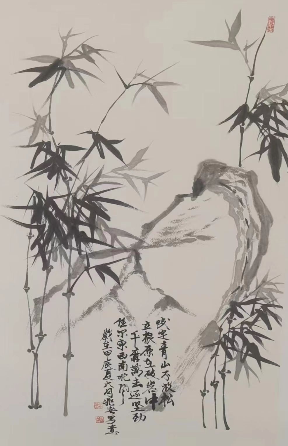 国画《咬定青山不放松》100x50cm(荣获第二十七届秦韵杯全国书画大赛状元奖参赛作品)