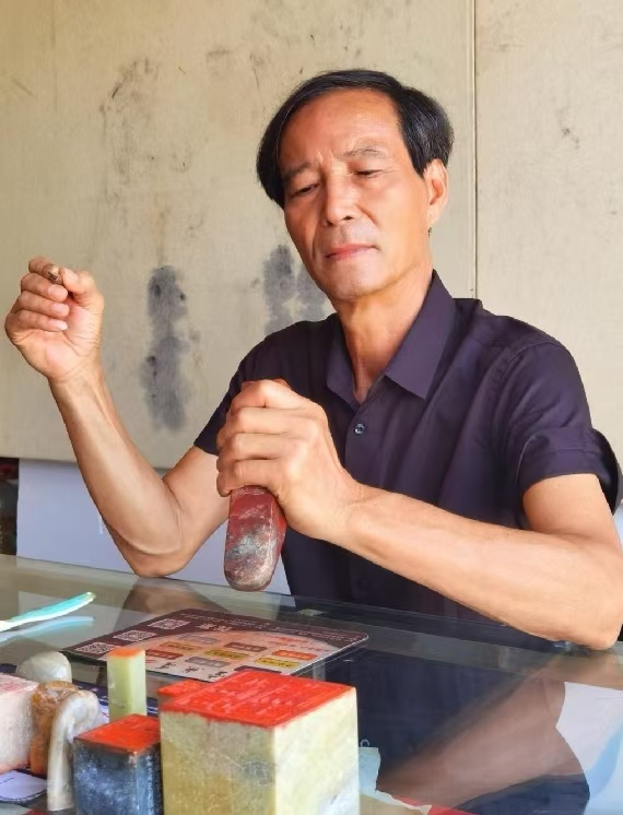 梁剑锐 治印中