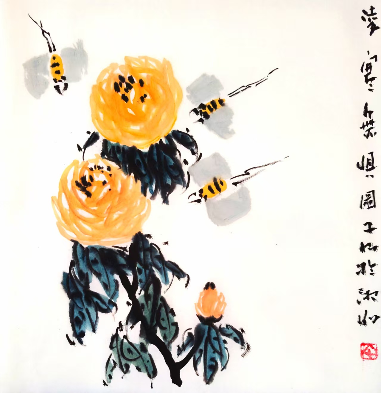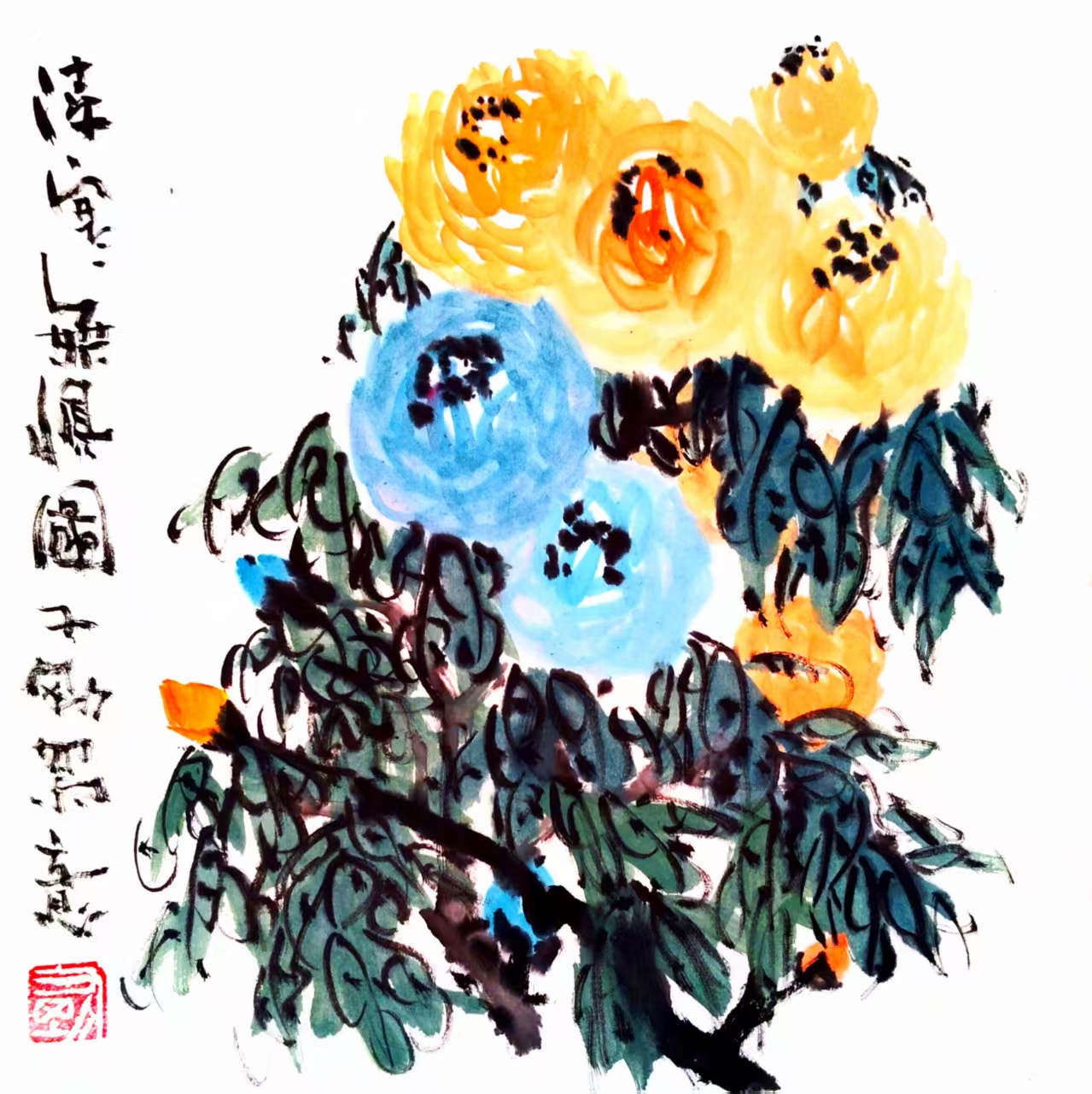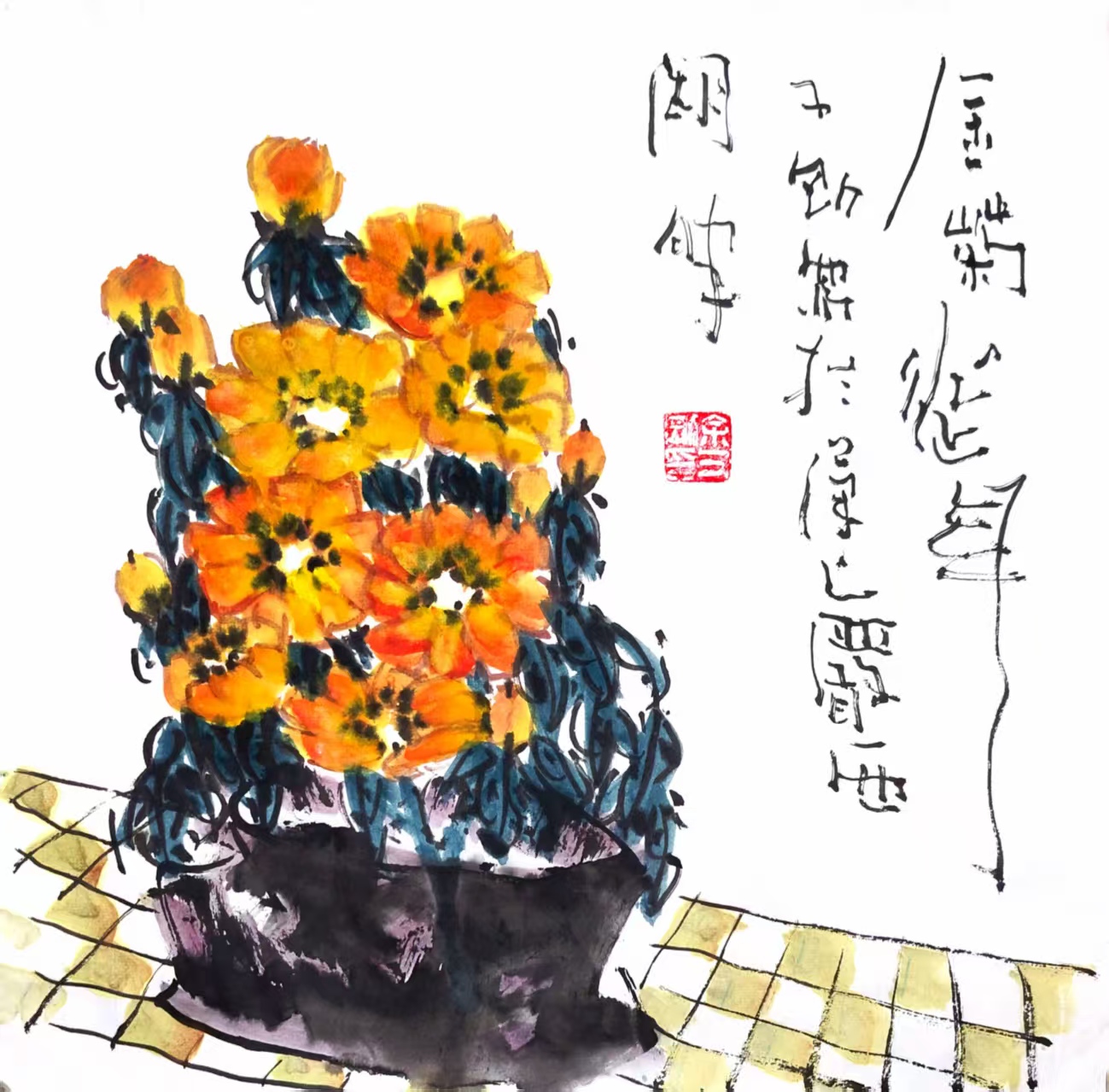写意国画《金菊延年》(2)33x33cm 2025