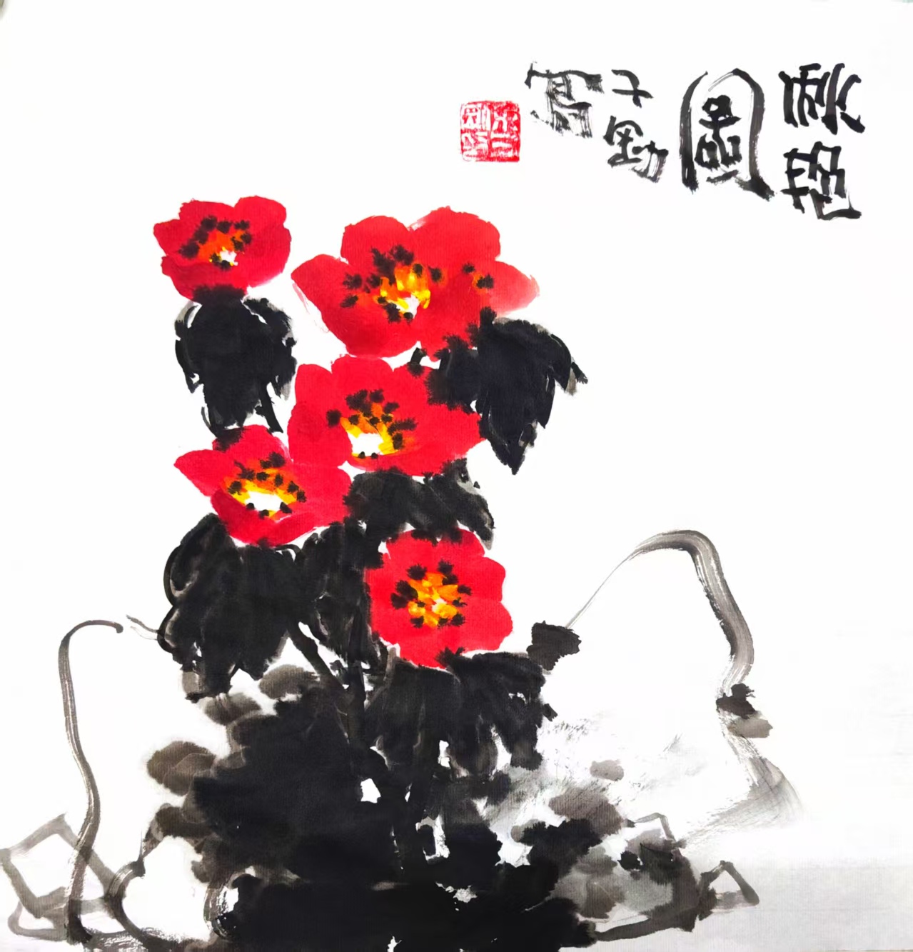 写意国画《秋艳图》(2)33x33cm 2025