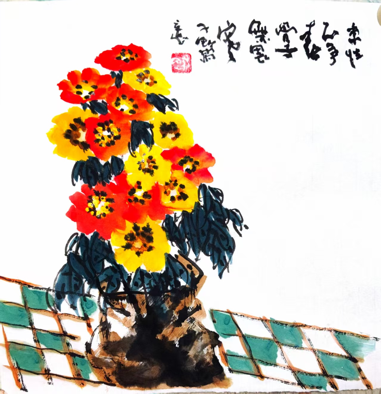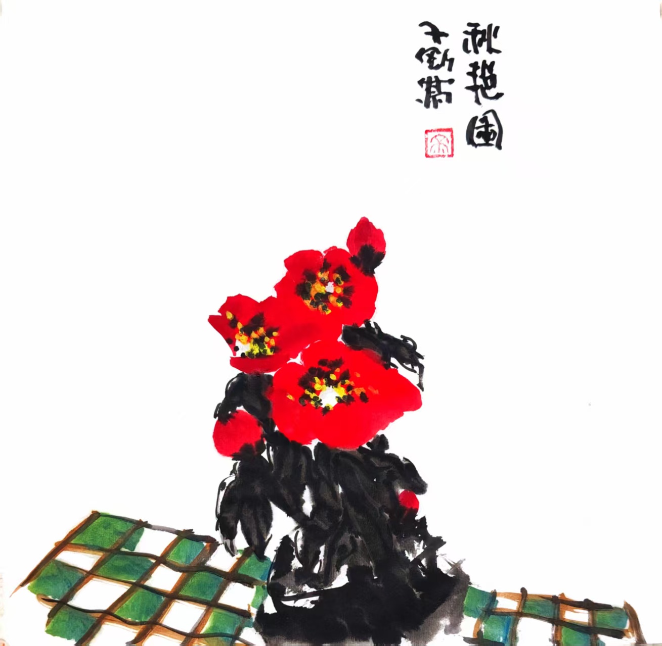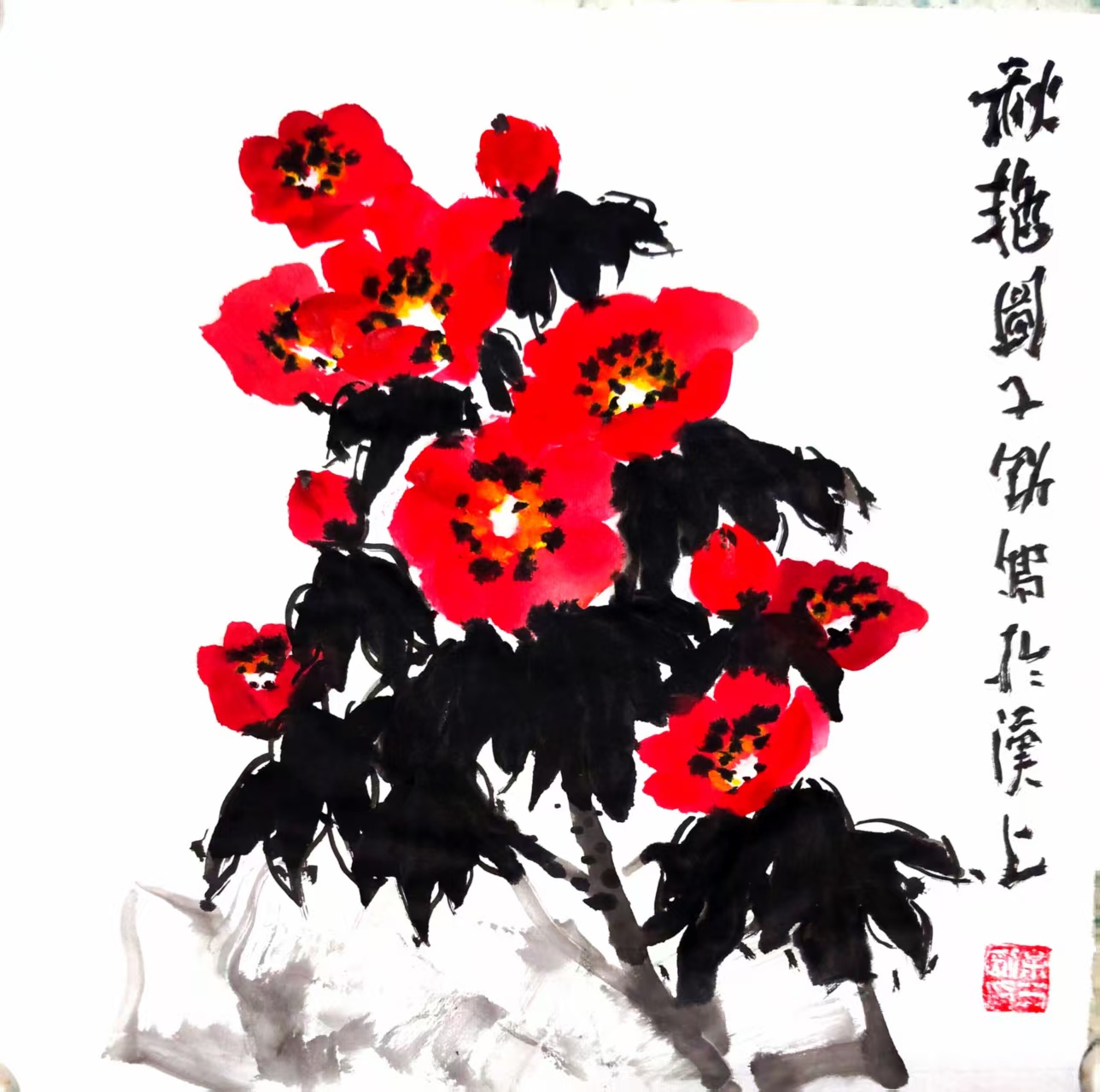 写意国画《秋艳图》(1)33x33cm 2025