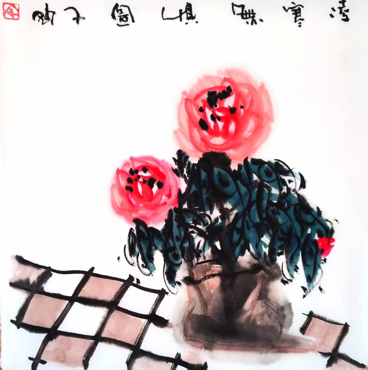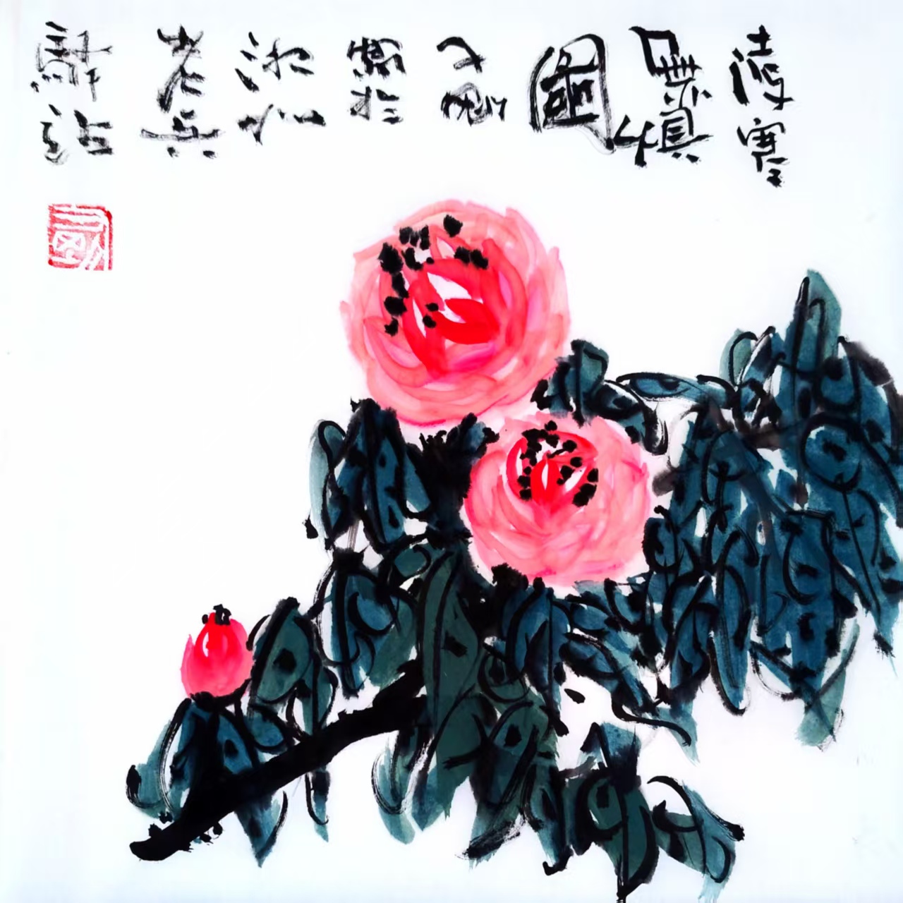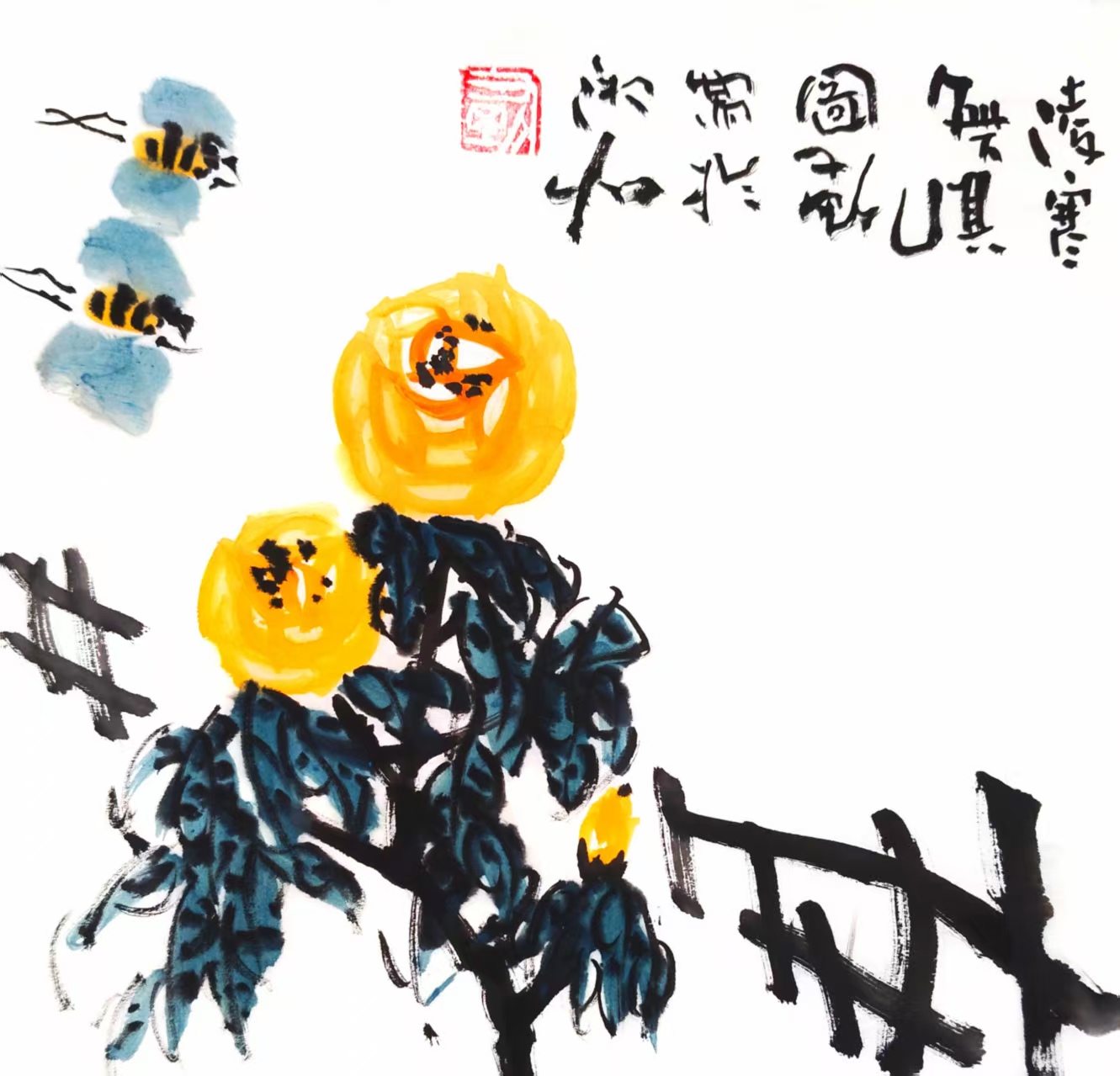 写意国画《凌寒无惧》(1)33x33cm 2025