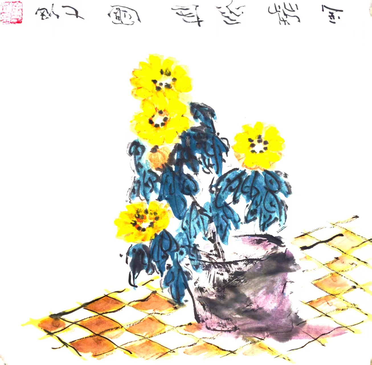写意国画《金菊延年》(1)33x33cm 2025