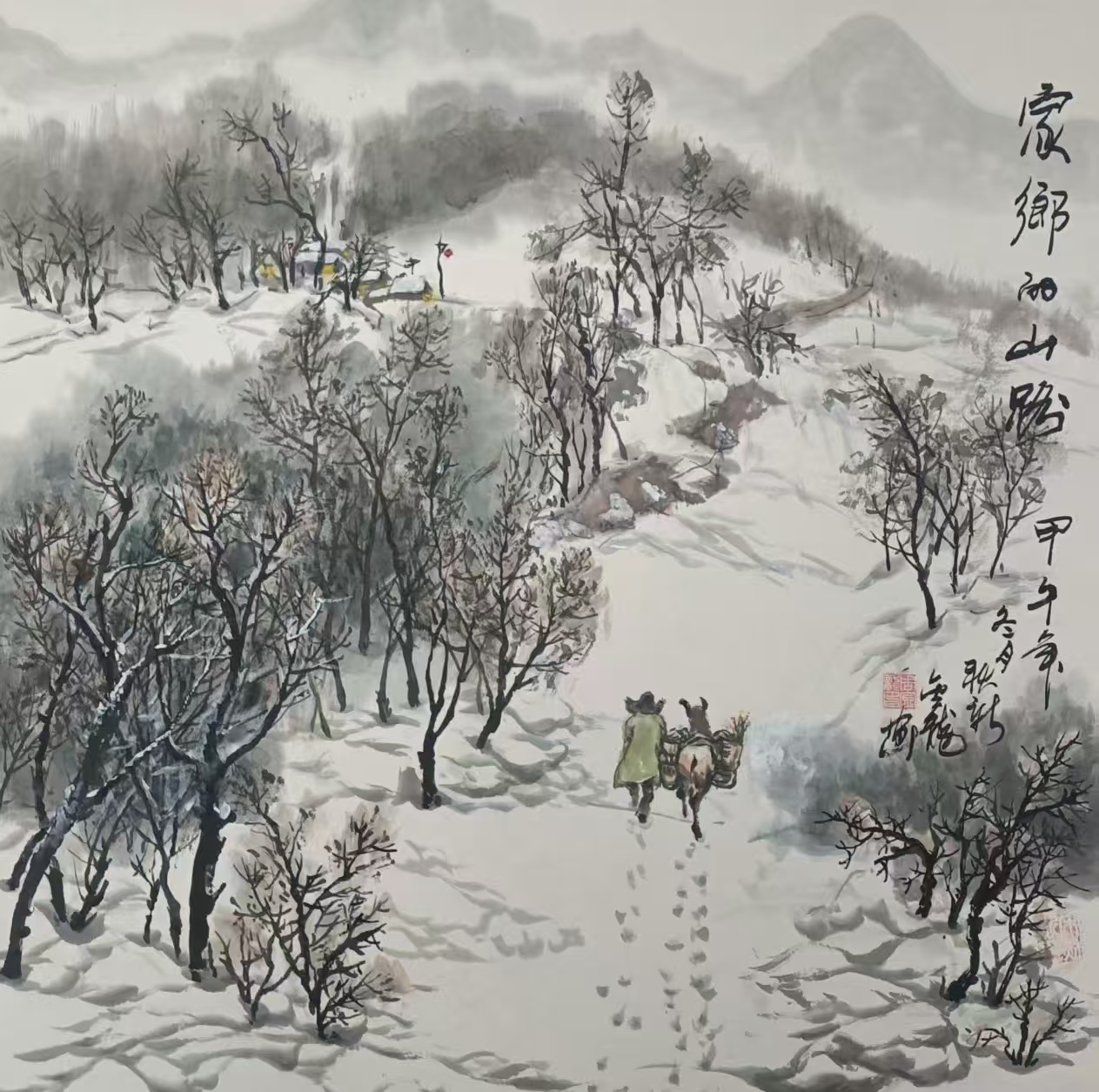 国画《家乡的山路》60x60cm