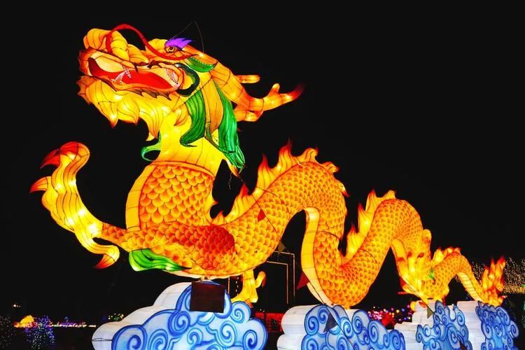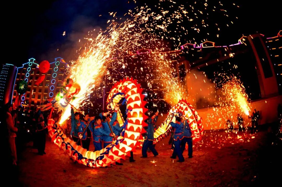 今朝龙舞在凡尘,灯盏流金闹市新。