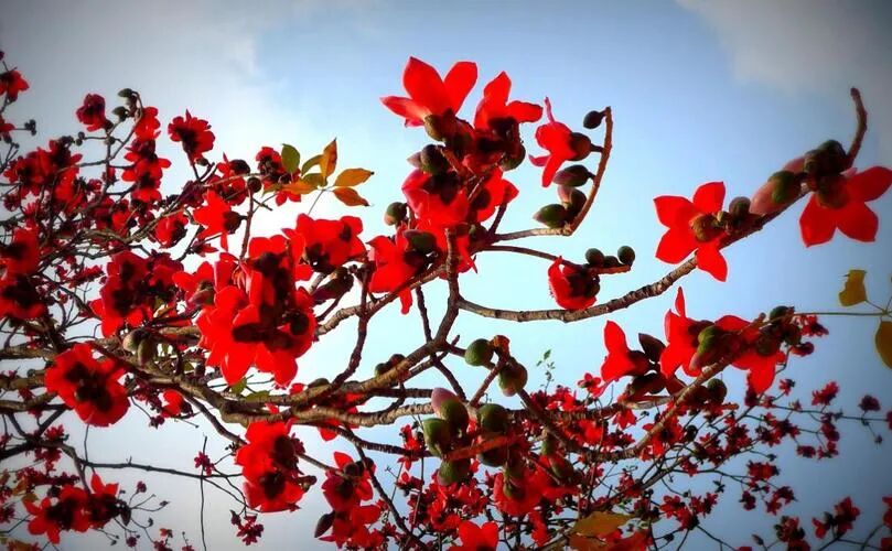 银花红烂漫,火树照天烧。