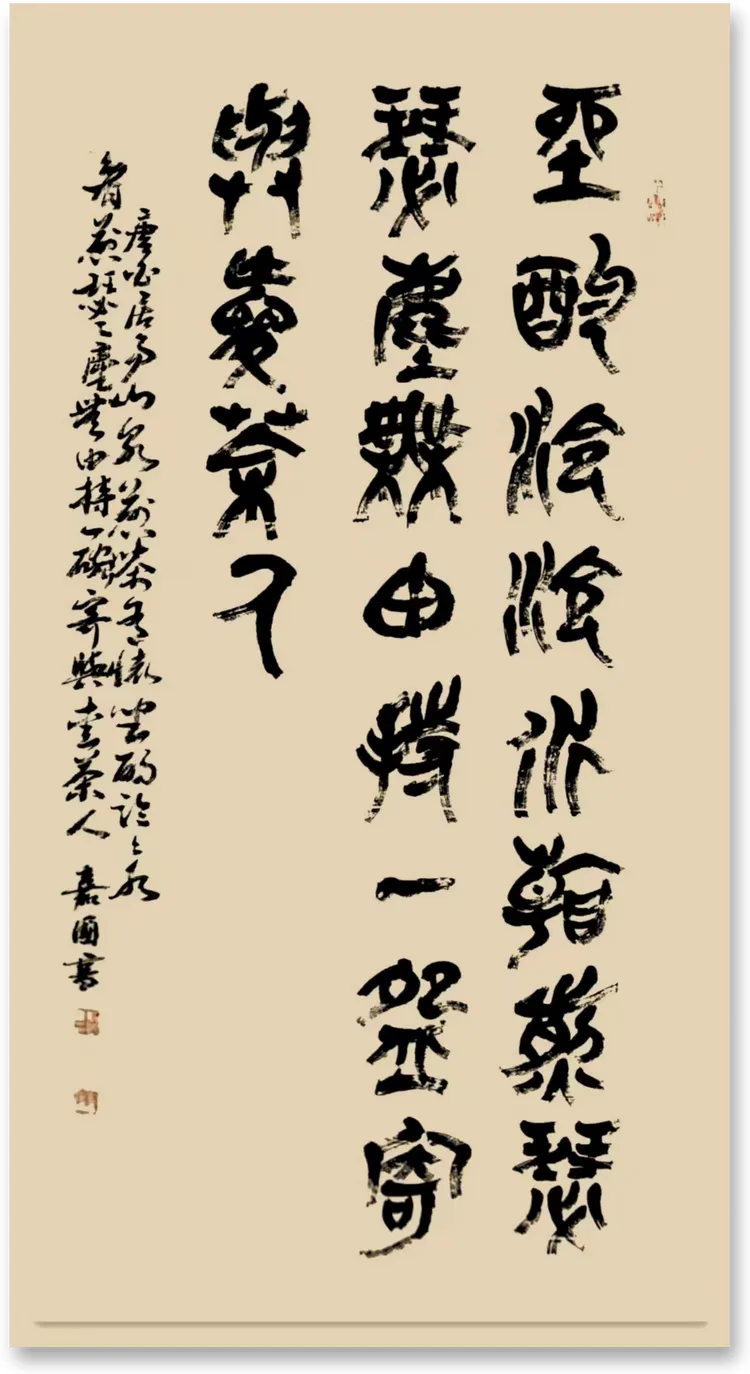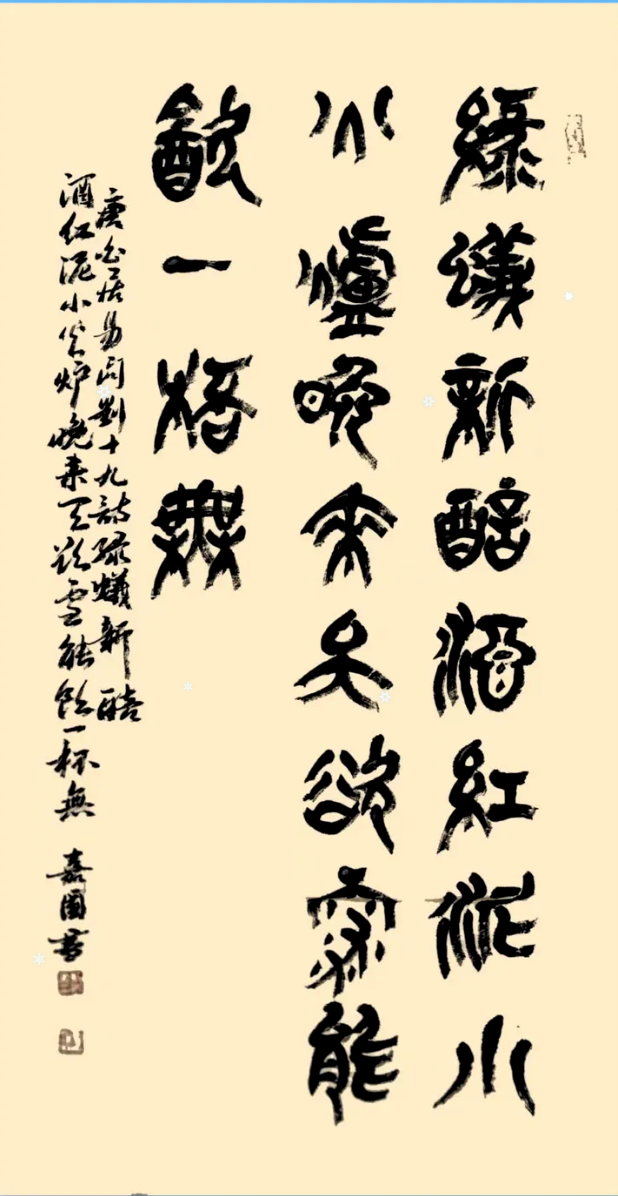 篆书 唐白居易:绿蚁新醅酒,红泥小火炉。晚来天欲雪,能饮一杯无
