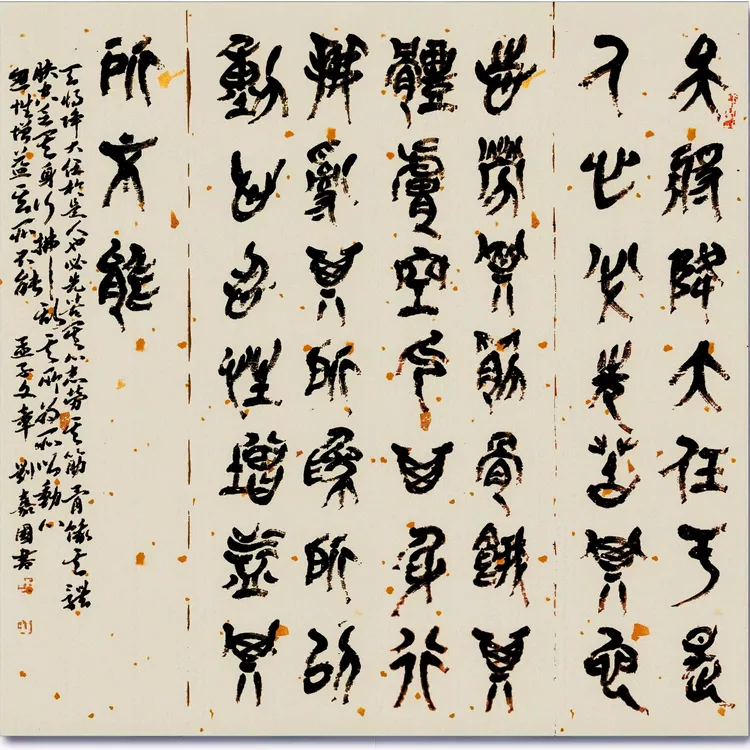 篆书春秋战国 孟子告子书:天将降大任于斯人也,必先苦其心志,劳其筋骨,饿其体肤,空乏其身,行拂乱其所为,所以动心忍性,曾益其所不能
