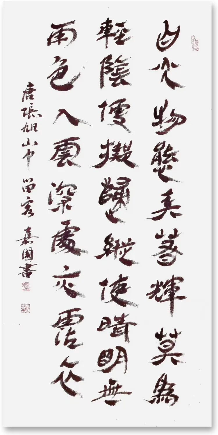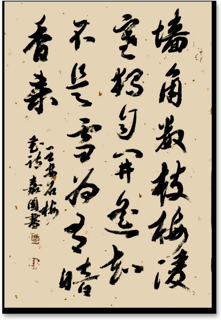 行草 宋王安石:墙角数枝梅,凌寒独自开。遥知不是雪,为有暗香来