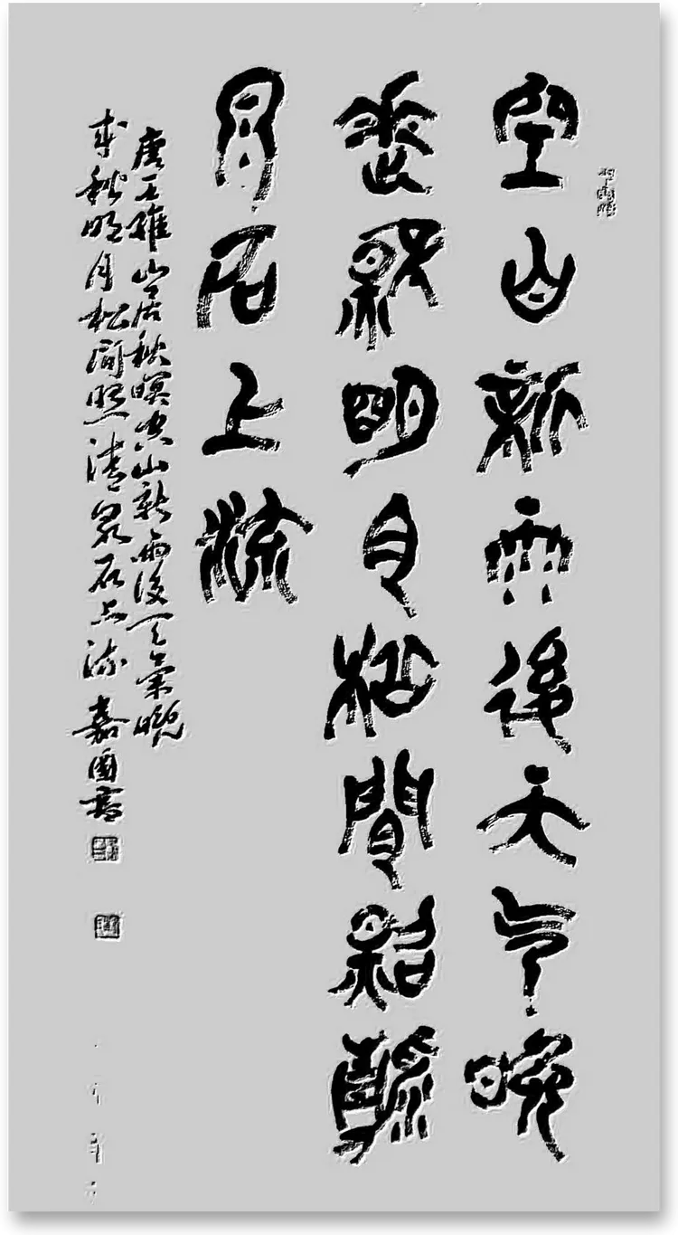 篆书 唐王维:空山新雨后,天气晚来秋,明月松间照,清泉石上流。